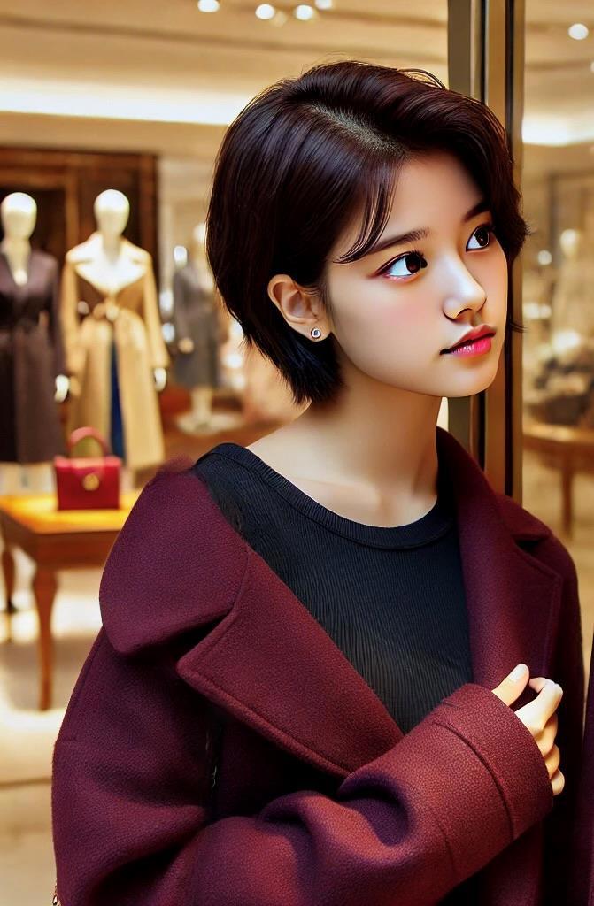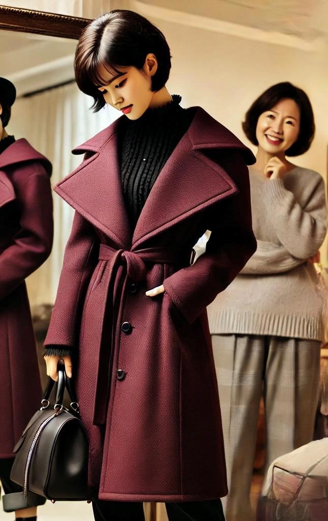 – Это «марсала» 1870 года, – со значением в голосе отвечает ЮнМи и повторяет слово в слово, сказанное продавцом, – тёмный винный оттенок. Пальто из новой коллекции итальянской компании «BRUNOTTI», известной своими эксклюзивными моделями…