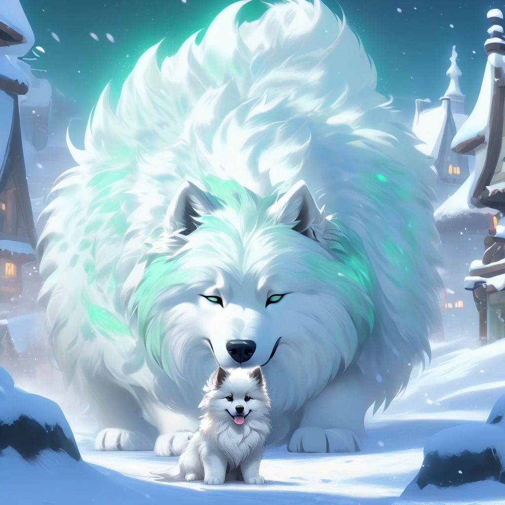 Оказалось – щенок. Довольно большой, плюшевый. Шерсть как пух серо-голубого цвета. Нос на удивление черный, а вот глаза зеленые, огромные такие, что Лисенок долго смотрела на это чудо. Ей лизали пальцы и радостно вились вокруг, виляя хвостиком. Когда успел стащить перчатку с руки, вообще не заметила.