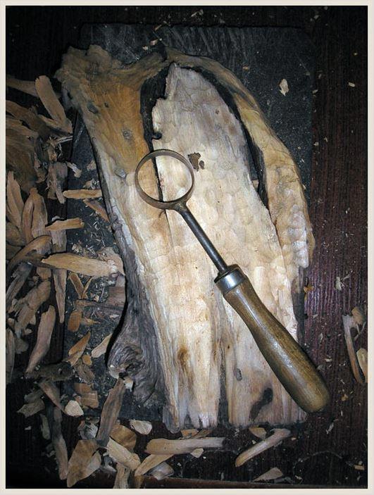 Очень люблю рыбачить и часто с рыбалки приношу домой не только рыбу. На берегах водоёмов и рек часто попадаются различные корни, обломки деревьев. Однажды гуляя по берегу песчаного карьера, возле старого кострища обнаружил кусок обгорелого полена. Оно мне показалось довольно интересным. Забрал с собой, не представляя на тот момент, как его мне использовать. Довольно долго оно пылилось в чулане, пока не дошли до него руки. Убрал с изнанки гнилые участки и лишнюю часть древесины.