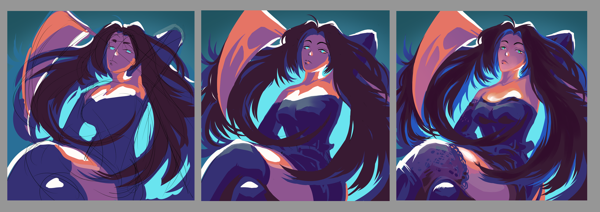Нагрудник из метеоритной стали подчёркивал прелести упругих грудей. Длинные перчатки позволяли видеть только её нежные, но крепкие плечи, а ниже локтя руки были закованы в латные рукавицы. На талии, ремнём из драконьей кожи, крепилась стальная юбка. Длинные, тренированные, но, как и в случае с плечами, аккуратные ноги были обуты в стальные ботфорты, а всё прочее прикрывали ажурные чёрные чулки.