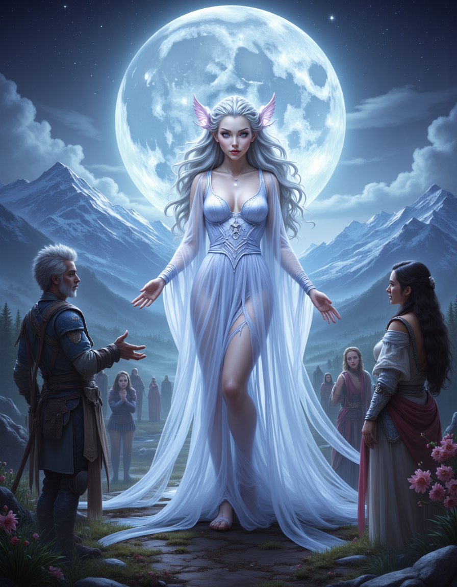 Внешность героини: светлая кожа, белые волосы, молодая девушка, Лунный дракон.