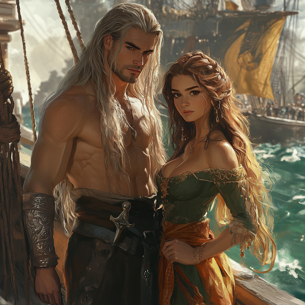 Мужчина, которого ярко освещали солнечные лучи, был обнажен по пояс, если не считать кожанных наплечников, наручей и перевязи с мечом. Длинные волосы платинового, почти белого оттенка спускались ниже плеч. Красив он был безумно. В чертах лица не получилось бы найти ни единой неправильности. Волевой подбородок выдавал в незнакомце прирожденного командира, золотые глаза воинственно сверкали и смотрели на нас с превосходством победителя. А плоский, рельефный живот переходил в ... змеиное тело.