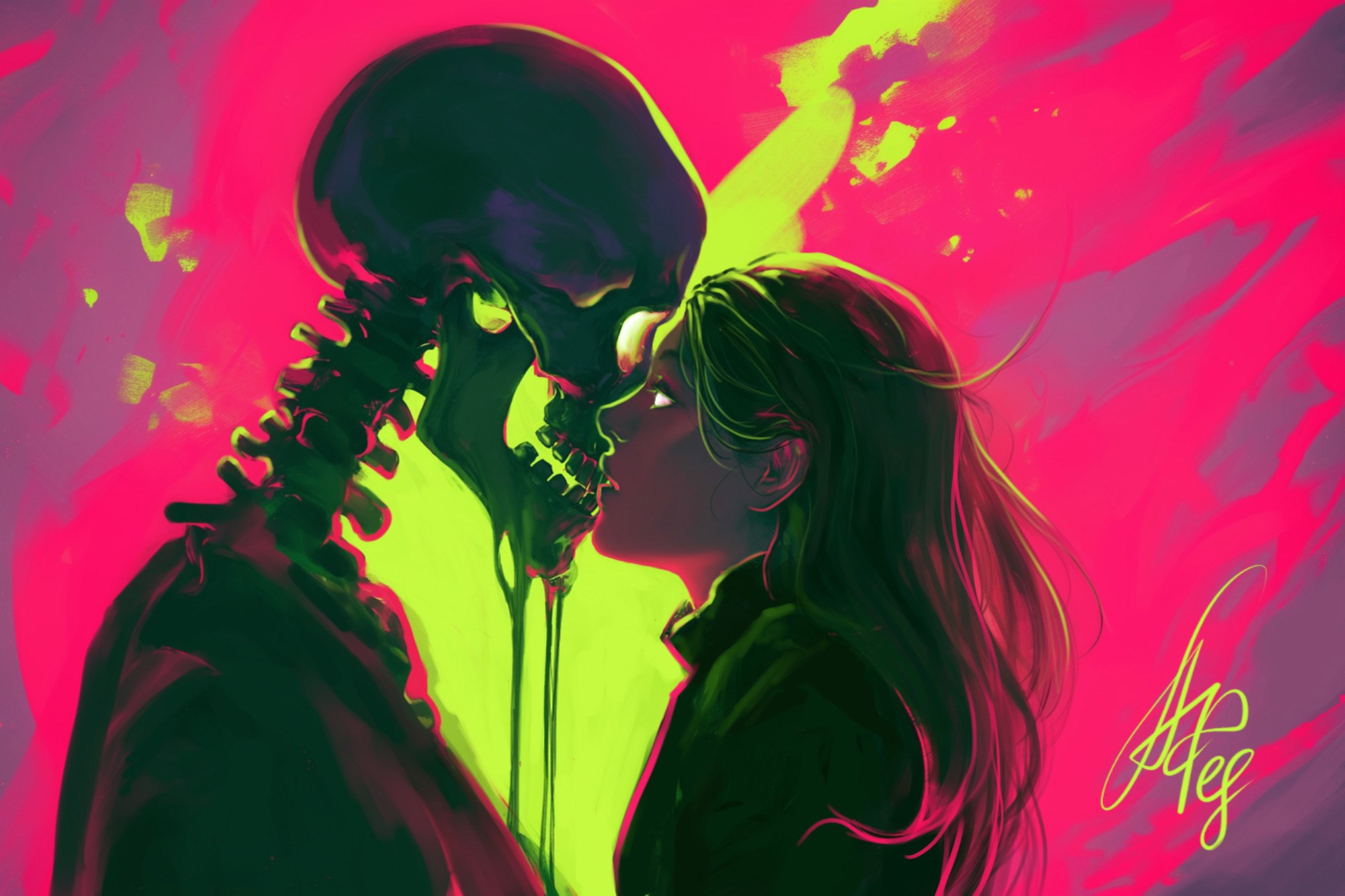 Поцелуй Автор: Алекс Фед Старая комишка - идеально вписалась на Хэллоуин. Trick or treat графика, иллюстрация, иллюстрация на заказ, компьютерная графика, рисунок, творчество, цифровая живопись, авторский арт, арт 351 Пожаловаться
