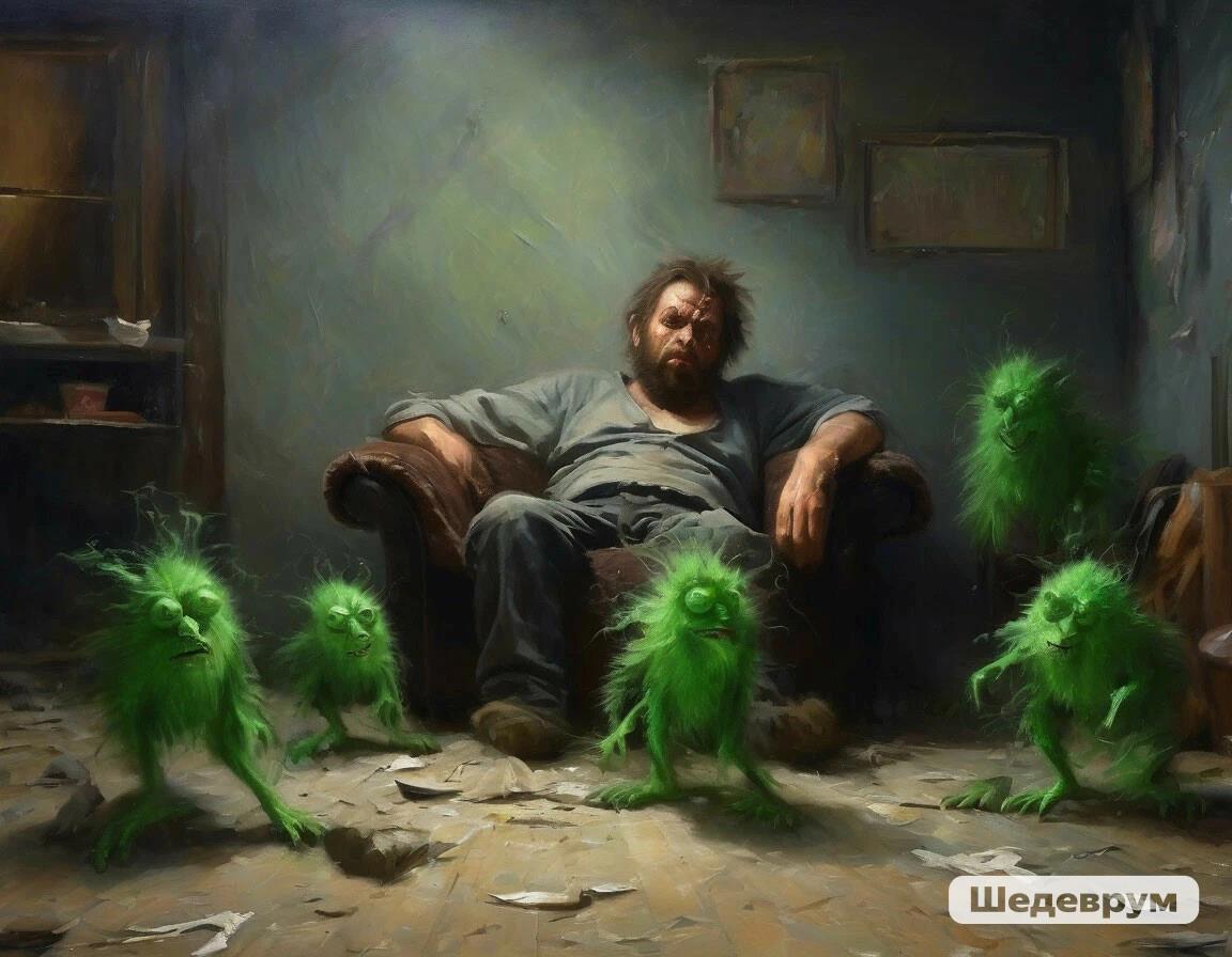 Картина Фыфкена "Мишка в похмельном бреду":) Автор: Николай Ионов И второй вариант. смешно, арт от нейросети, пародия, иллюстрация 210 Пожаловаться