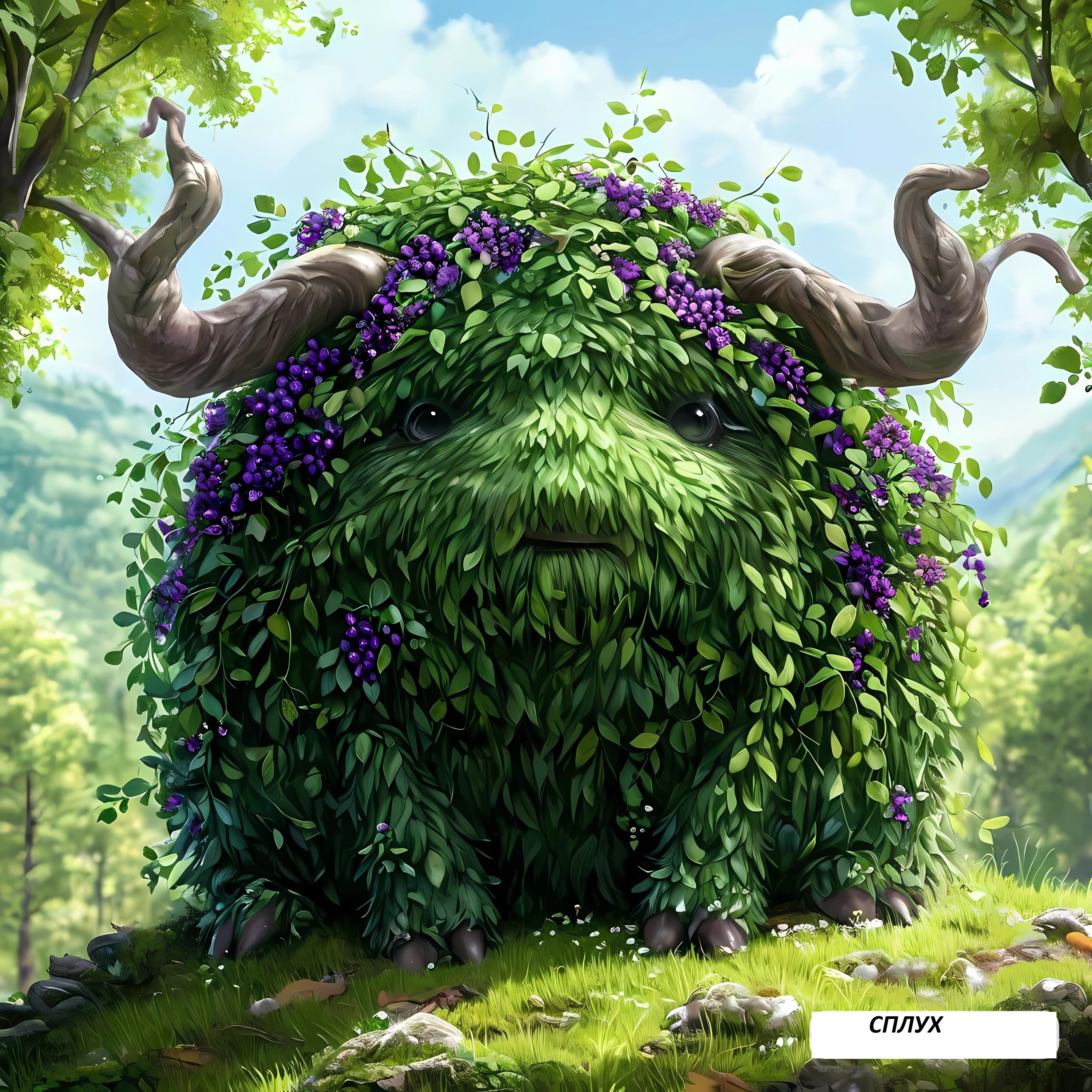 Черное пятно при ближайшем рассмотрении оказалось не черным. И не пятном. Это был сплух. Точно такого же размера, как все прочие, только вместо метелочек и шерсти он был покрыт темно-изумрудными сочными листьями. Маленький ходячий кустик. С рожками.