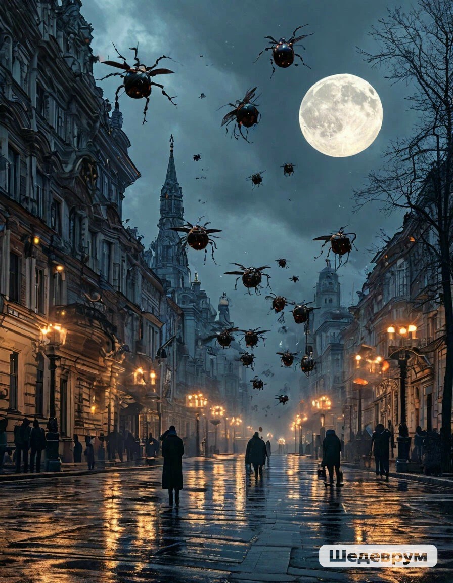 Жуки над москвой Автор: Юрий Смирнов Жуки прилетели ночью девушка, иллюстрация, нейросеть, персонажи, рисунок, творчество, фантастика, фэнтези, арт 419 Пожаловаться