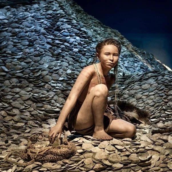 Девочка культуры Эртебёлле (средний каменный век, территория совр. Дании, берега Лим-фьорда) с янтарными бусами на берегу моря (Балтийского). Героиня нашего с Ольгой Гусевой впроцессника "Солнце Ладоги". Не знаю, как одевались люди в каменном веке, но ориентировались на реконструкцию (80% точности по заявлению археологов, ну или кто там делал реконструкцию) по захоронению Тюбринг Виг. Однако, все равно образ УСЛОВНЫЙ, это же НС. Вот фото из музея Мосгорд, Дания.
