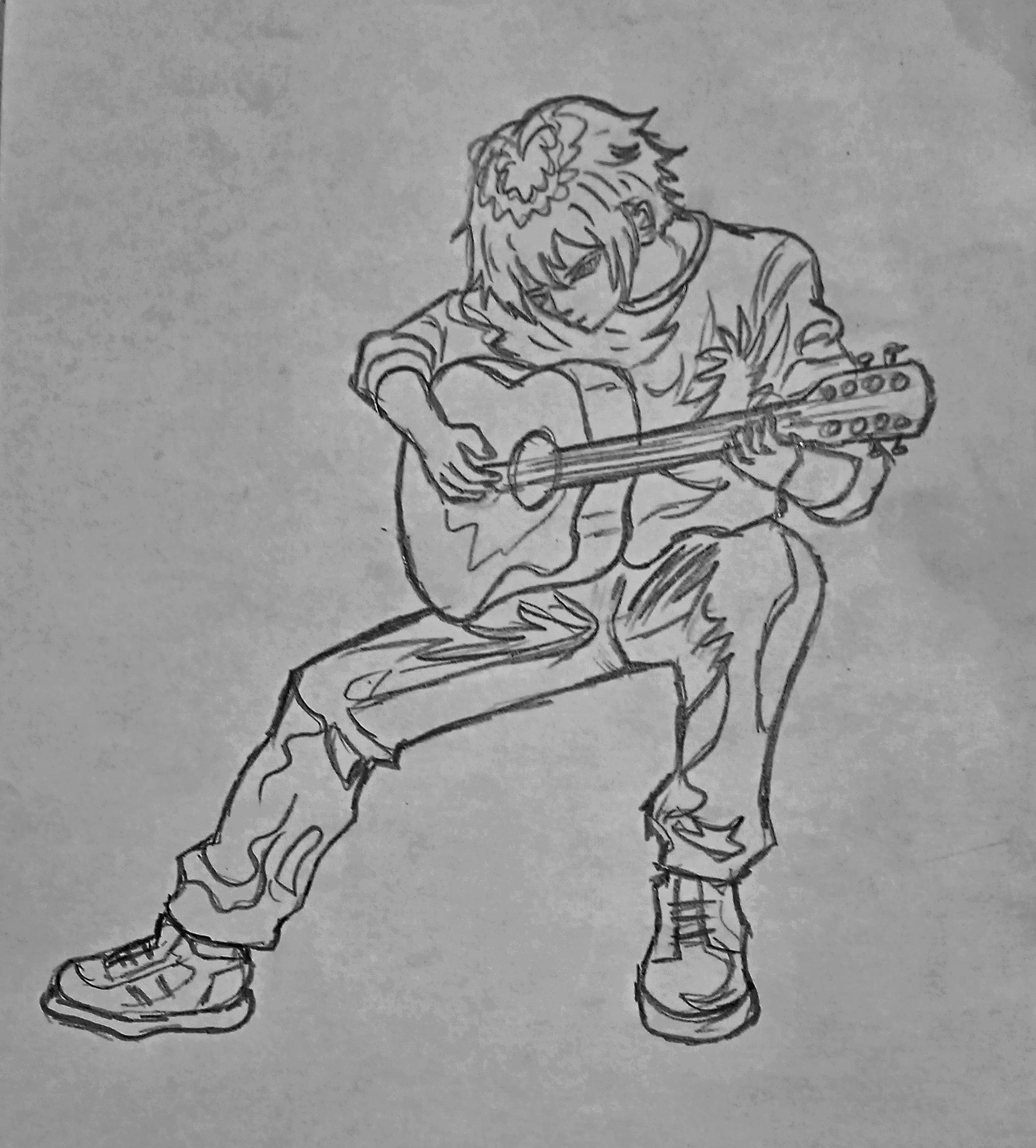 Юки из "Если завтра настанет" Автор: Просто Yoko Ссылка на книгу https://author.today/work/248058Скетч/заливка/портрет иллюстрации для книги, аниме персонаж, парень с гитарой, аниме парень, дождь, нейрохудожник 184 Пожаловаться