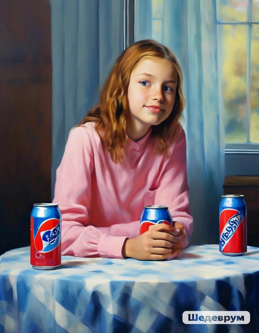 Картина Серого Ова "Девочка с пепсиками":) Автор: Николай Ионов смешно, картины художников, иллюстрация 210 Пожаловаться