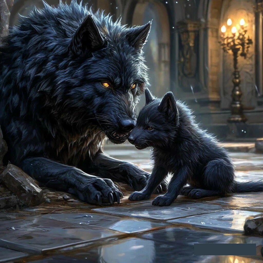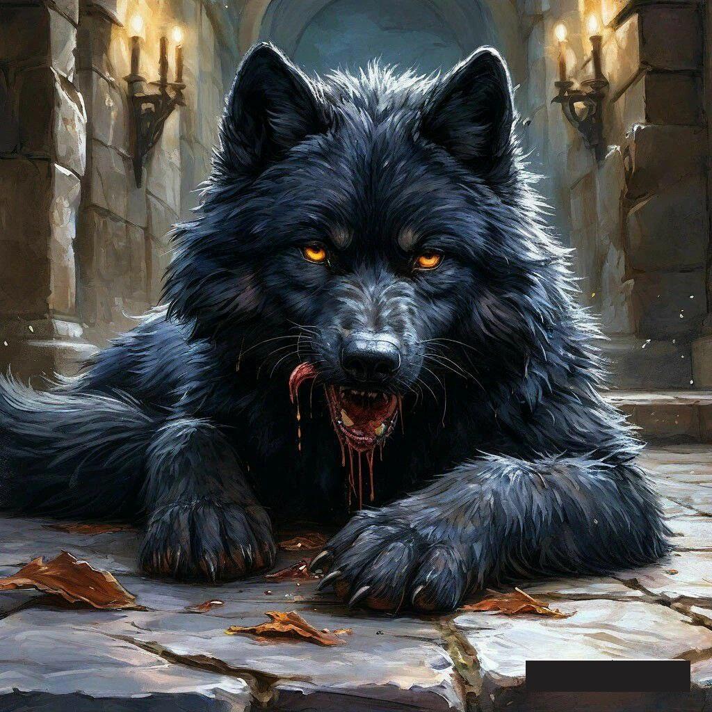 Всем добра! Как и роща с кроликами, давно было в планах показать это чудо. Относится иллюстрация к циклу "Целестиал". Зовется Малым Черный волком и является результатом навыка призыва у авантюристов со специализацией Призрак либо с предрасположенностью к данной специализации.