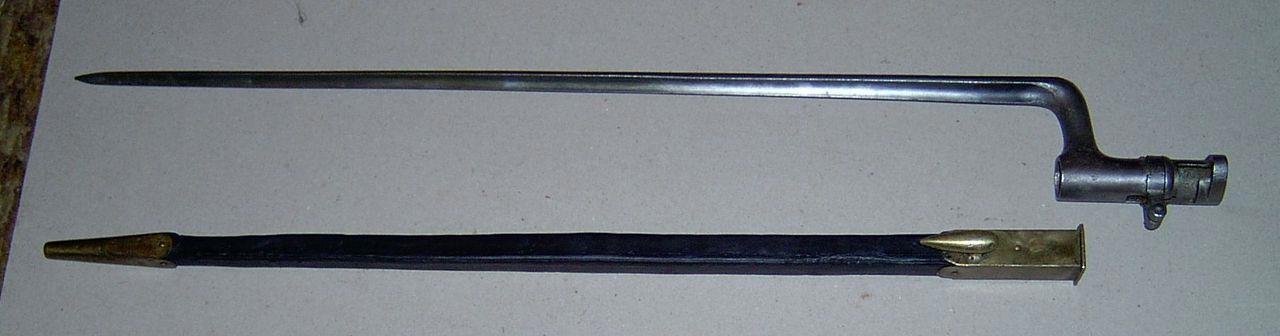 Средний штык - от пехотной винтовки Бердана № 2 обр. 1870 г.. Клинок четырехгранный. В примкнутом положении находится справа от ствола.Длина клинка 20 дюймов (508 мм). Вес штыка 1 фунт (409 грамм). В внутреннем наряде и в увольнении штык носили отомкнутым от винтовки в ножнах слева на поясе (это по уставу).