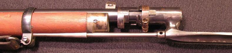 Верхний штык - от винтовки Бердана № 1 обр. 1868 г.. Клинок трехгранный. В примкнутом к винтовке положении находится под стволом.