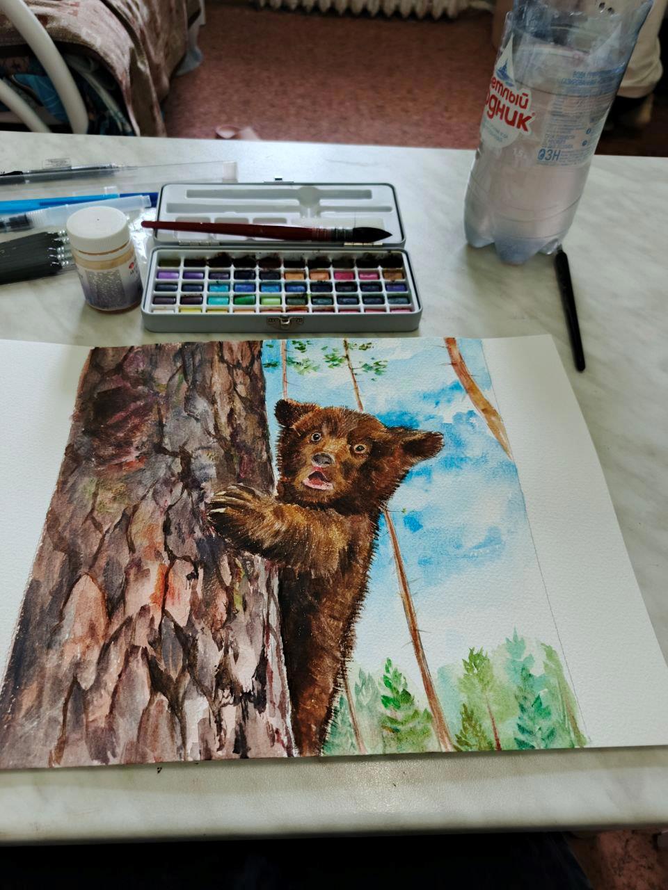 Готовлю иллюстрации для моей книги про медвежонка 3+. Это одна из них. Момент, когда медвежонок обнаружил, что может лазать по деревьям.