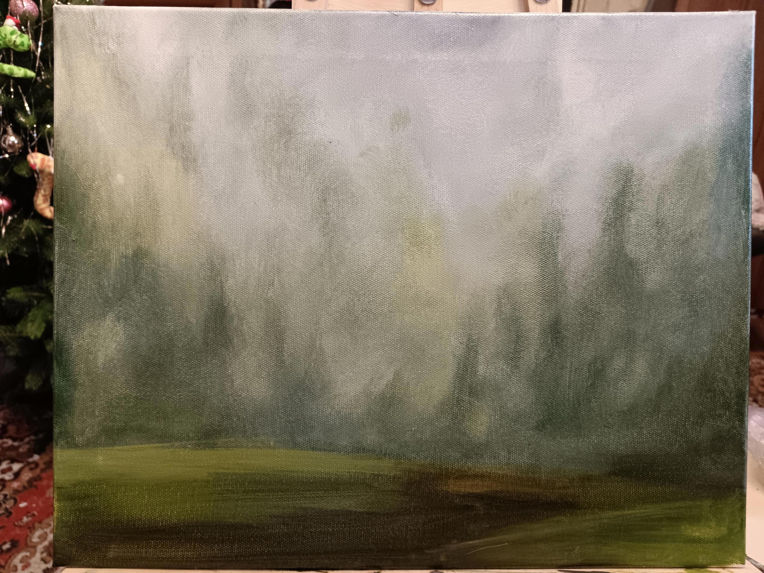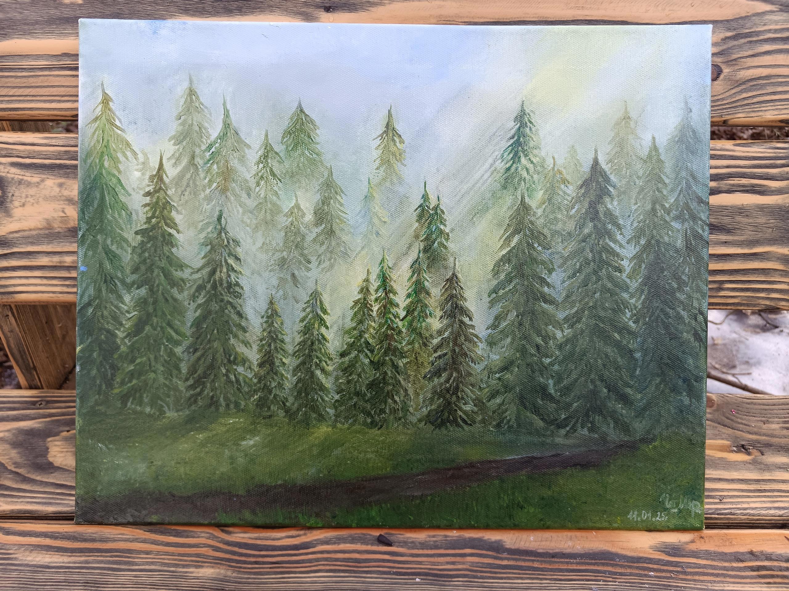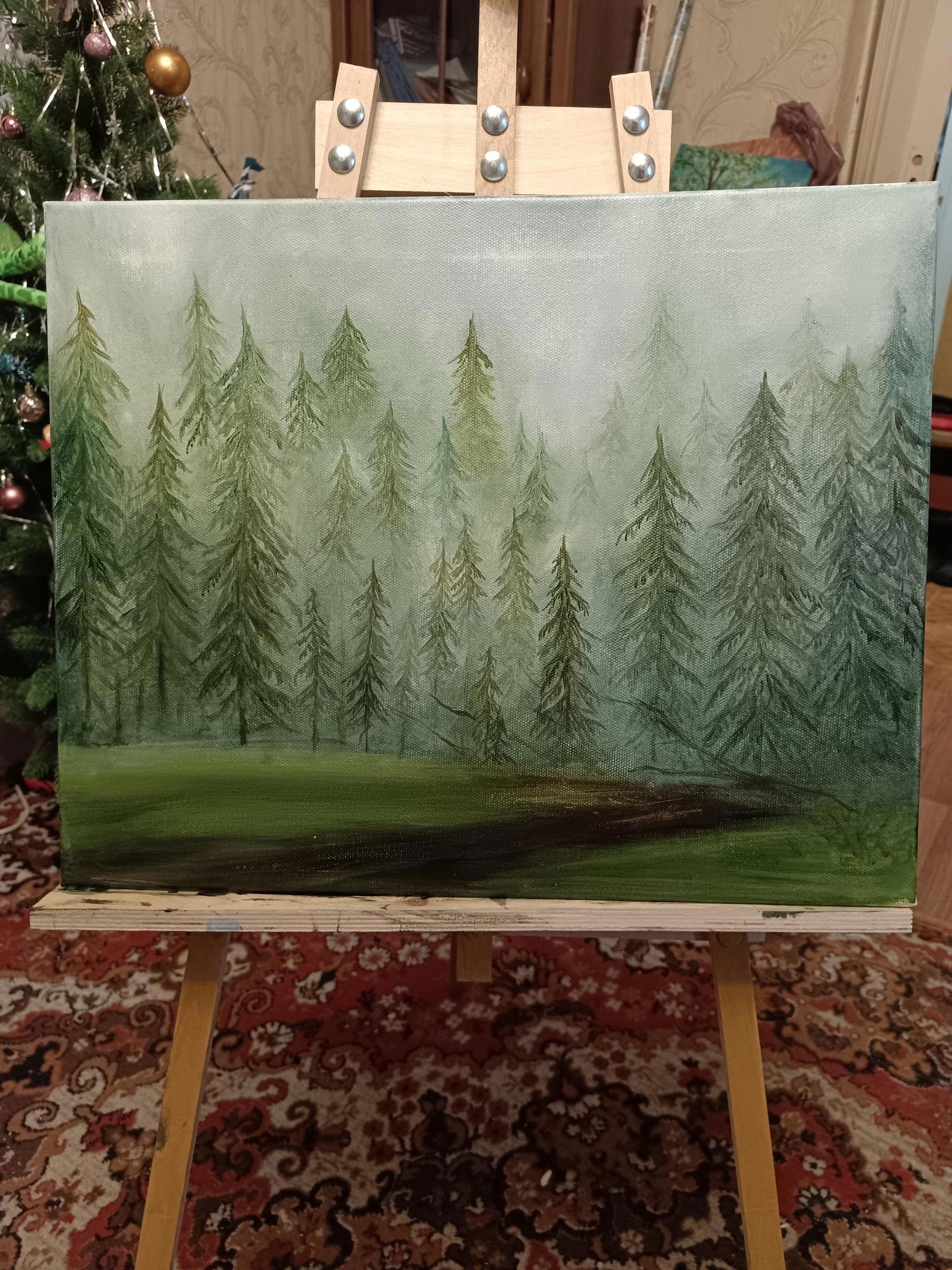На заднем фоне виден кусочек работы "Яблонька в цвету", выложу ее в следующий раз. ))