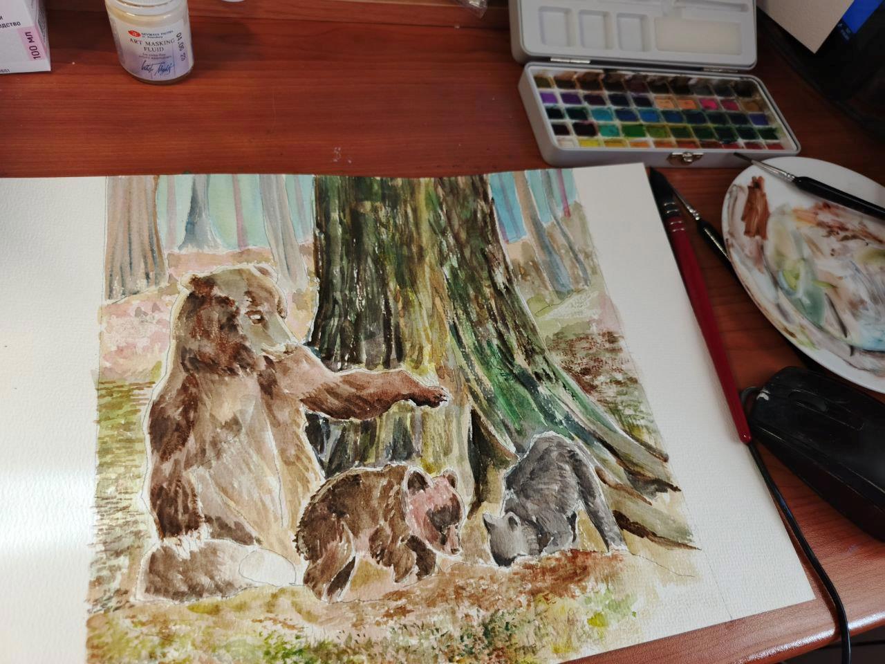 акварель, бумага, 27х27см (Готовлю иллюстрации для моей книги про медвежонка 3+)