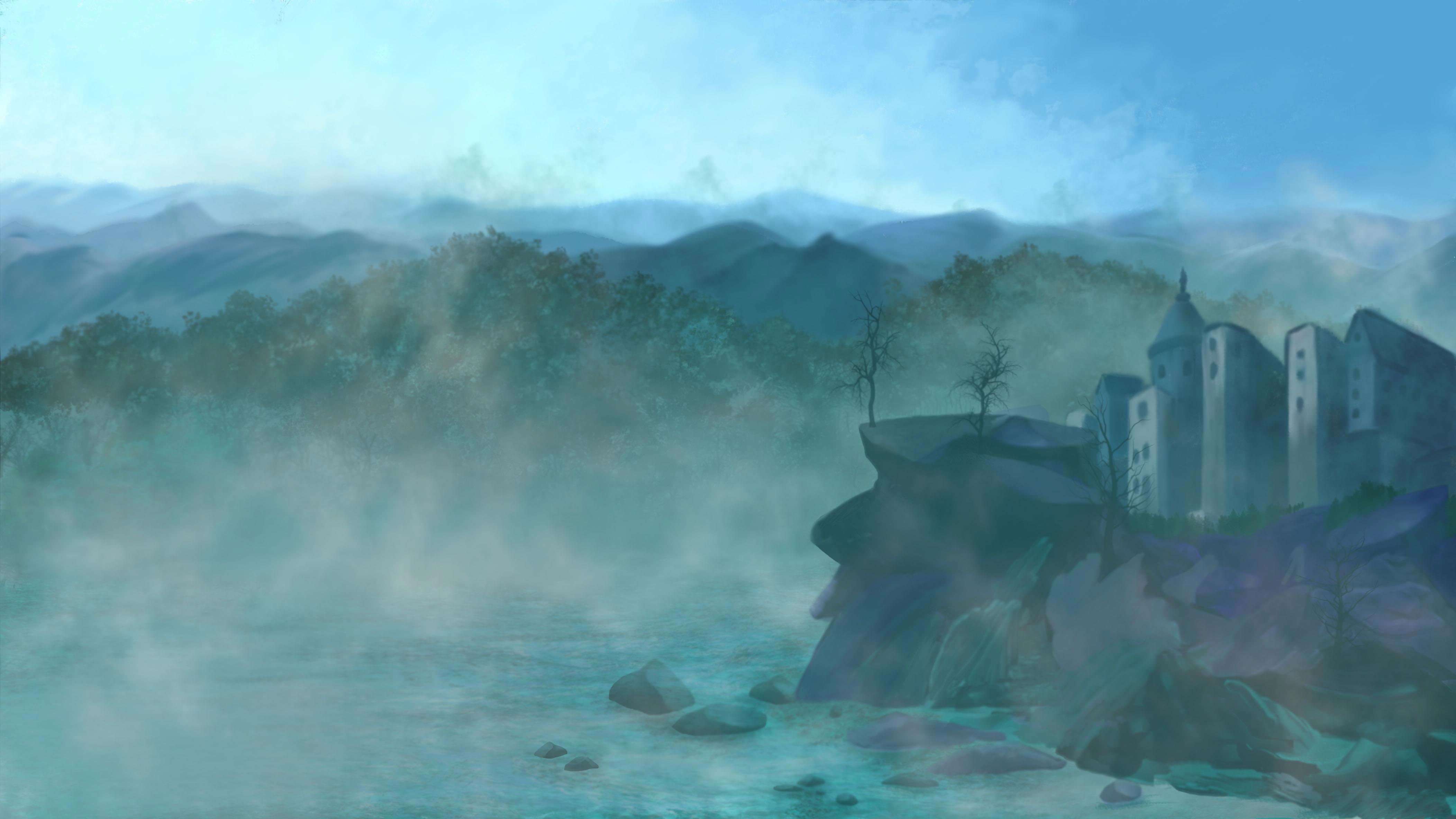 Финальный результат изначально выглядел так, но я подумала и удалила два слоя тумана и неба Все нарисовано от руки и без референсов. Хотя специальные кисти использовала