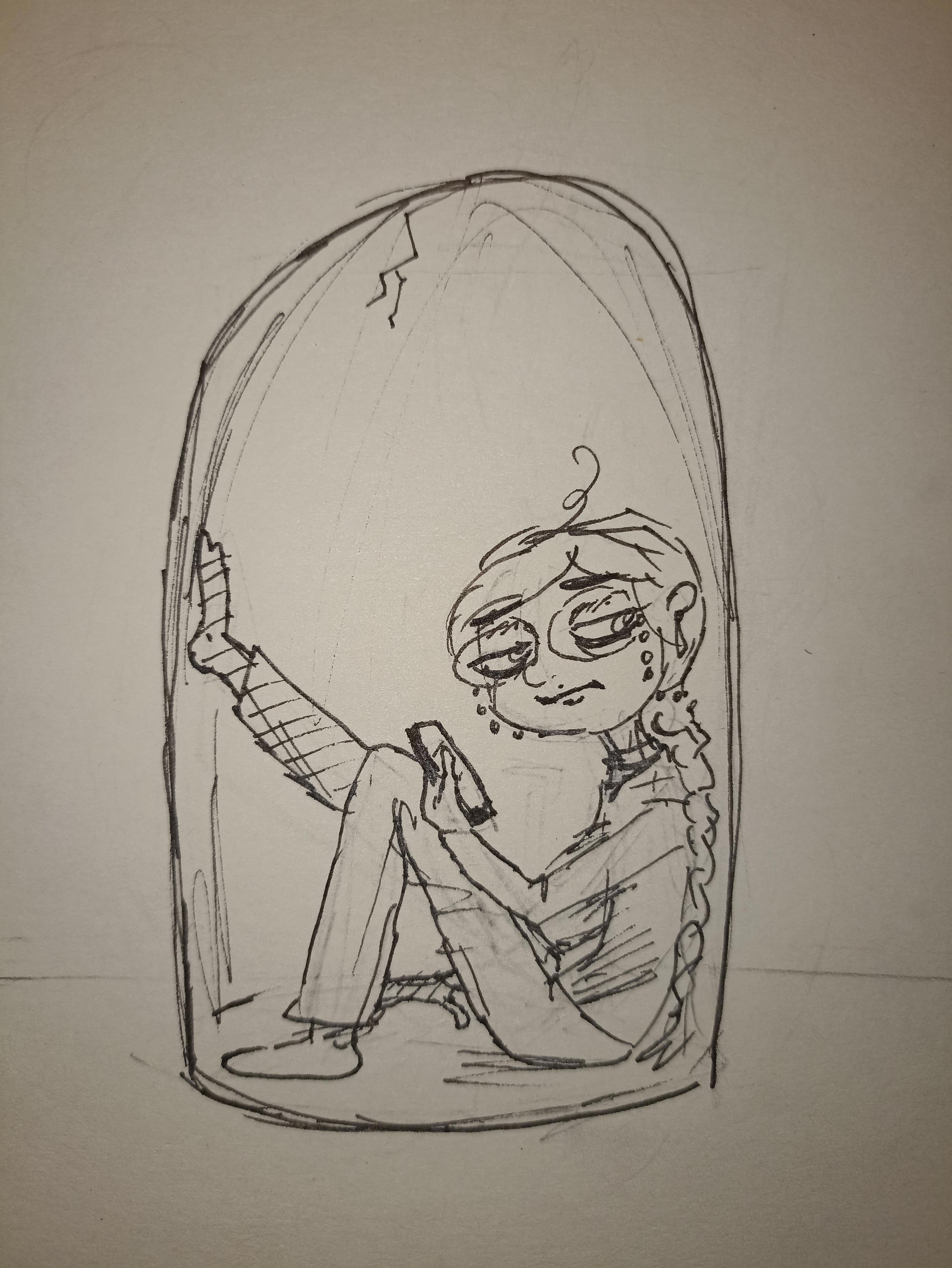Чувствую себя в плане творчества как-то так: я со своей бессмысленной суетой и тупиковыми способами эту суету разрядить нахожусь под колпаком, сквозь который не могут пробиться идеи. Мои миры больше не живут со мной, они остались где-то там, в фантастическом вчера. Вдохновения нет, мною движет лишь депресняк, а на депресняке я не могу писать и продвигать что-то... ну что зашло бы народу. Это для музыкантов и поэтов прикольный источник силы. А я птица, что теряет способность петь.