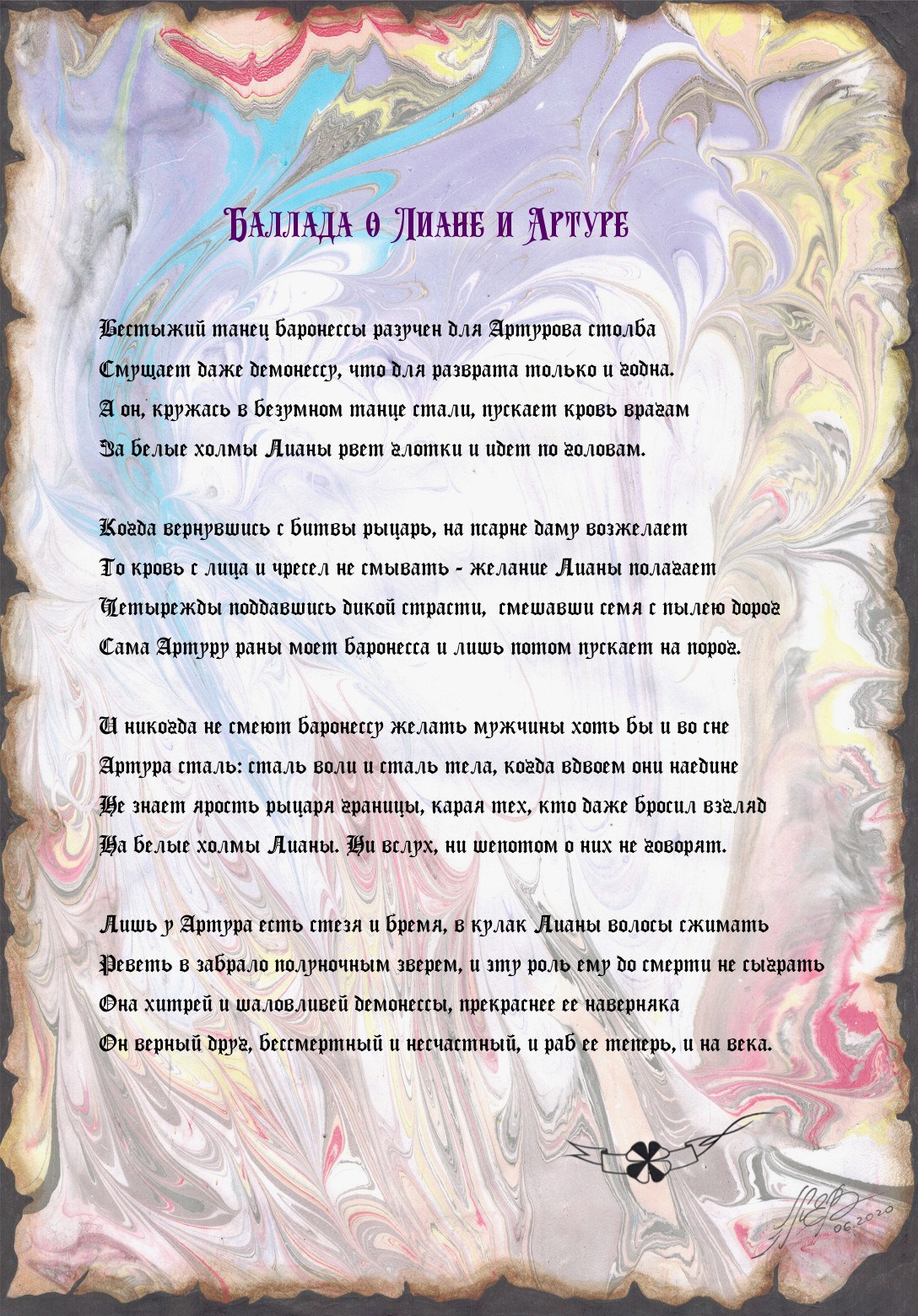 Баллада о Лиане и Артуре (ранний Клевер) Автор: Борис Ли Блэк другой мир, клеймо забвения, мои книги, творчество, фэнтези, эбру, авторский мир 429 18+ Пожаловаться