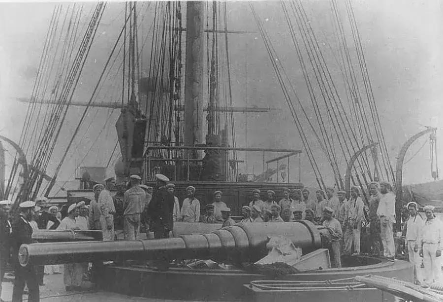 Редкое фото. 8-дм (203-мм) морская пушка с длиной ствола в 35 калибров (8/35-дм пушка). Два таких орудия стояли на канонерской лодке "Кореец".