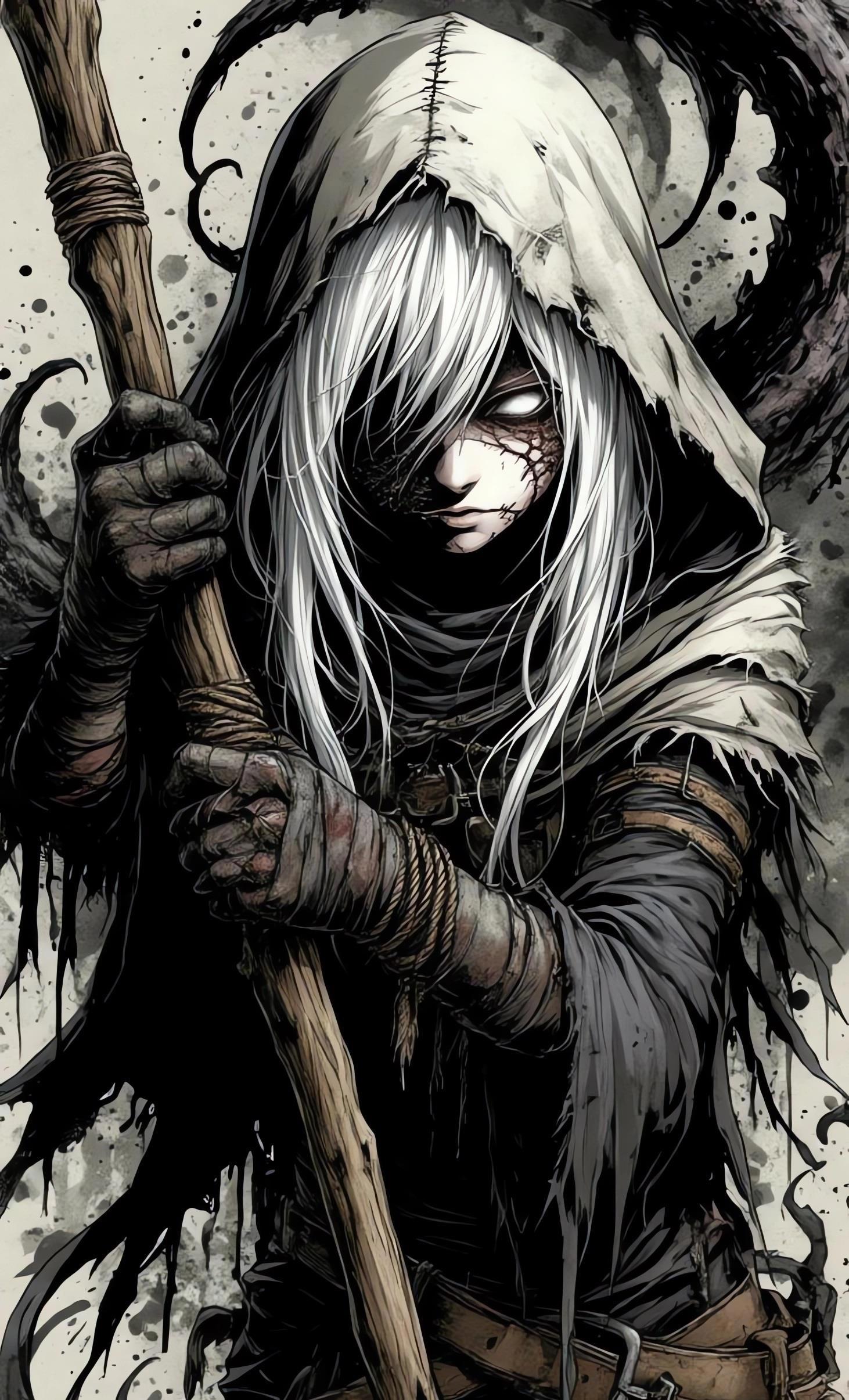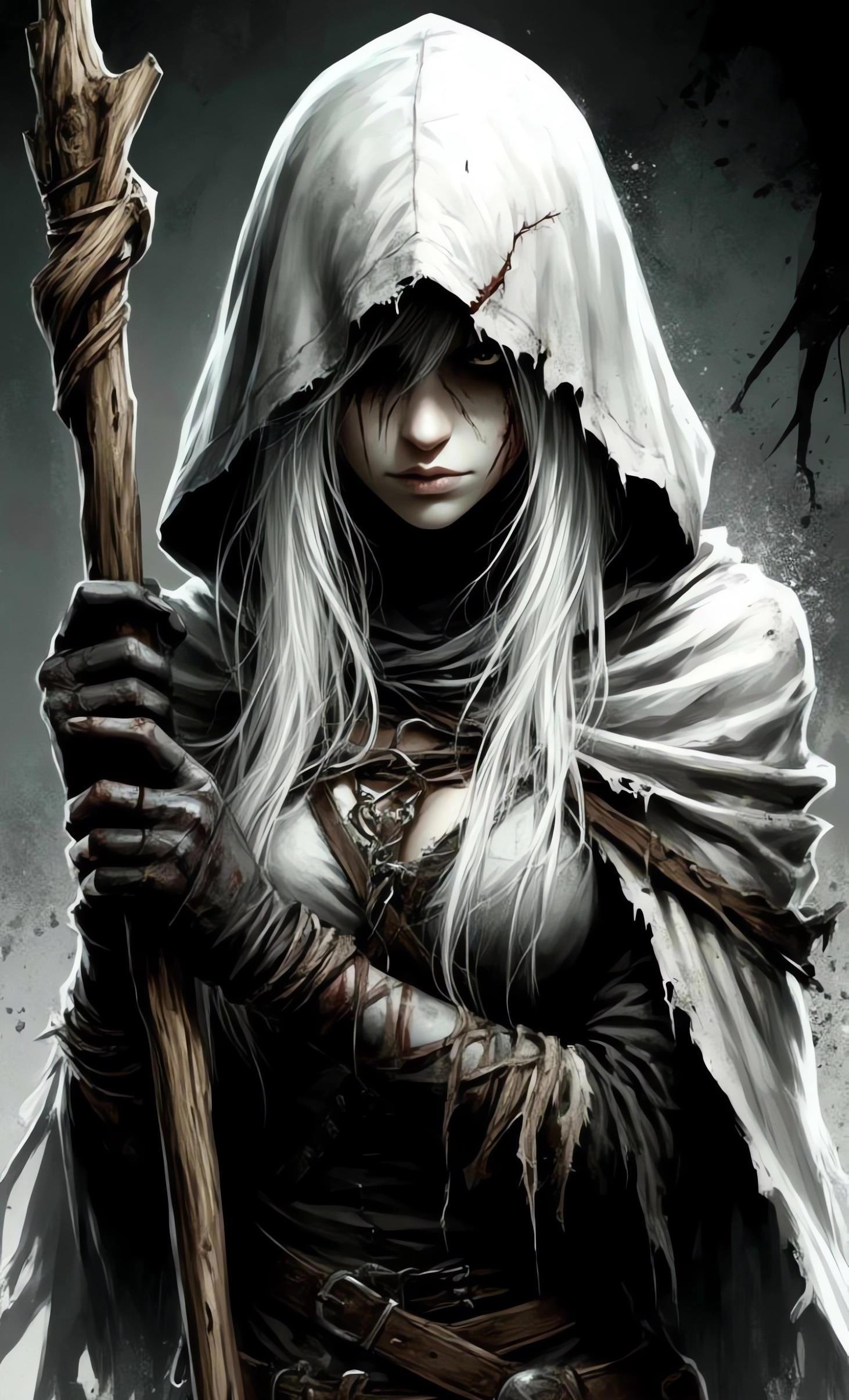 Есть еще одна иллюстрация, похожая в нужный образ, но моложе и с двумя руками. Покажу бонусом, она мне очень понравилась. Что-то такое в ней от Окалисс есть.