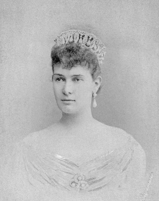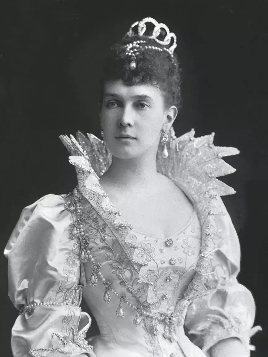 Мария Павловна, урождённая принцесса Мекленбург-Шверинская — в маскарадном костюме и тиаре с уменьшенным объёмом и без жемчужных подвесок. 1888 г.