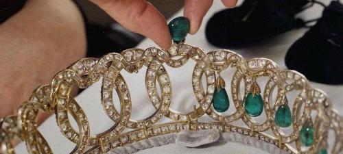 Легендарная модистка королевы Елизаветы II, Анджела Келли (состояла на службе с 1993 г. и до самой смерти венценосной хозяйки в 2022 г.) в своей книге рассказывает, что каждый из владимирских жемчугов и кембриджских изумрудов имеет свой номер и отдельный мешочек с этим номером.