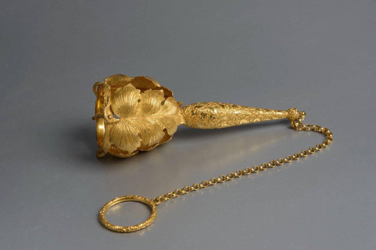 Портбукет с золотой вазочкой из трёх стилизованных виноградных листьев и ручкой, перевитой стилизованными листьями. 1820-1830-е гг. Государственный Эрмитаж. Санкт-Петербург.