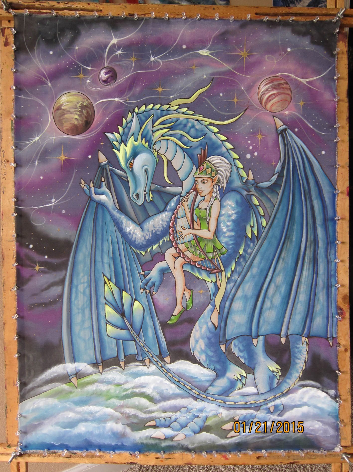 Поющий дракон Автор: Alexianna Иллюстрация к сказке "Поющий дракон". Батик (холодная техника). иллюстрация, персонажи, авторский арт, арт, фэнтези 548 Пожаловаться