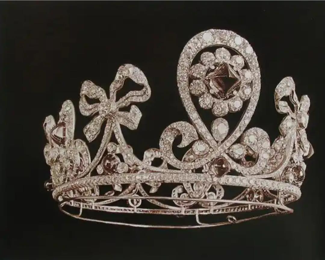 Существует распространённая версия, будто диадема была подарена Императрице её августейшем супругом Николаем II в 1900-1901 гг. Это не совсем верно. На самом деле она шла в комплекте с ожерельем, что вместе составляло парюру (Парюра – набор ювелирных украшений в едином стиле).