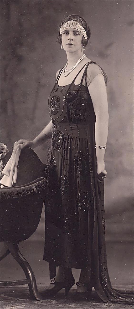 Великая Княгиня Елена Владимировна (1882–1957), принцесса Греческая и Датская. На ней диадема «Владимировская бахрома» и бриллиантовая брошь-бант Марии Павловны, доставшаяся в наследство от матери. (Про них см. в моих изображениях: «Владимировская бахрома»). 1920-е.