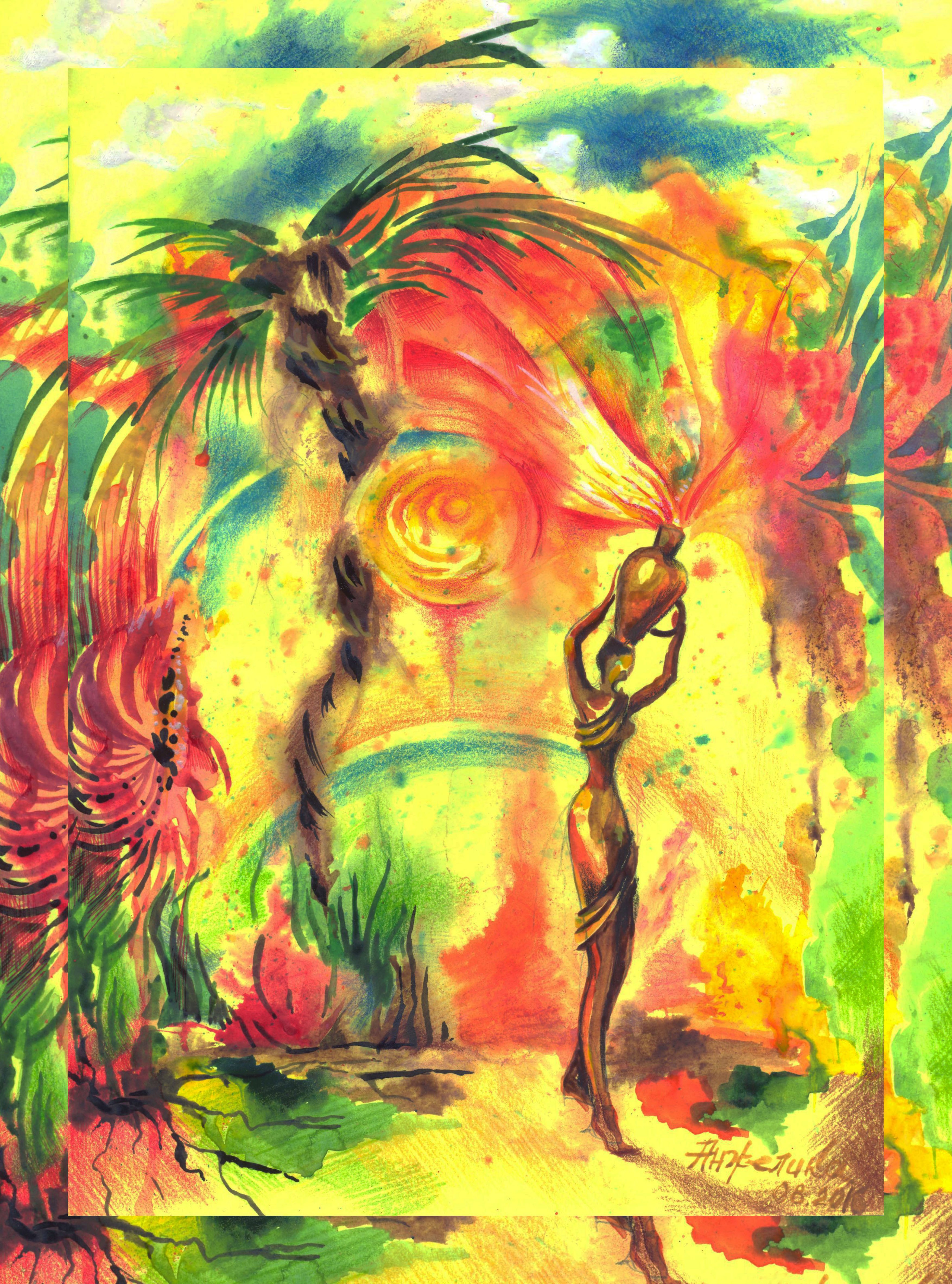 Этот портрет родился, глядя на картину "Жара", представленной ниже. Просто стало интересно, какая она, девушка Жара