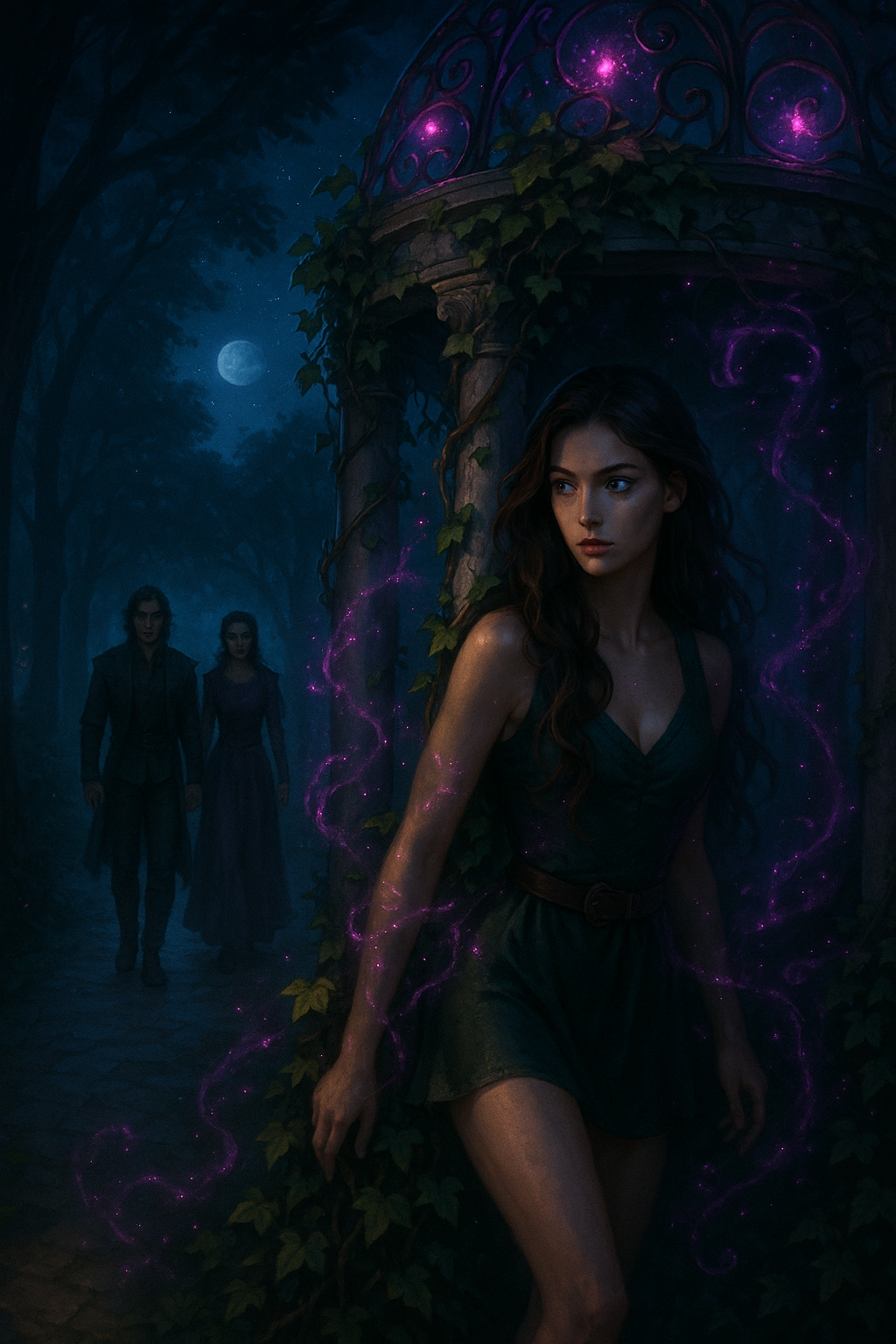 Размышляя, я уже почти дошла до беседки, оплетенной лианами, когда услышала тихие шаги и приглушенные голоса.