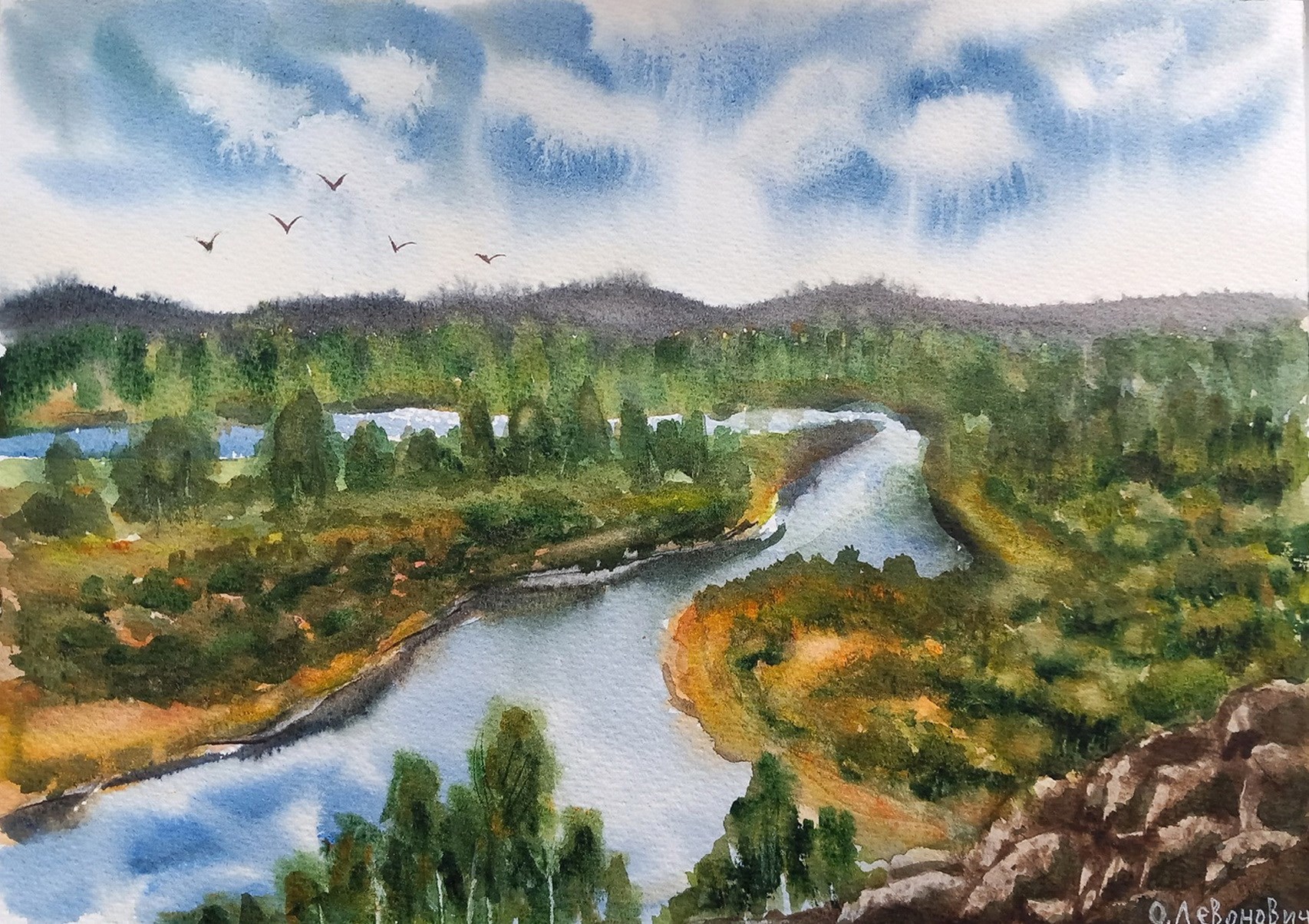 Ингода Автор: Ольга Левонович Река в Забайкалье.Акварель 380х270, бумага — хлопок. пейзаж, акварель 107 Пожаловаться