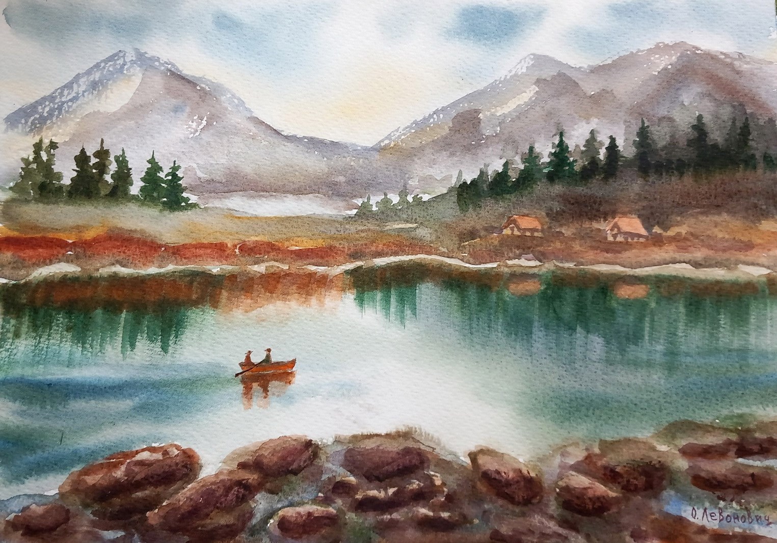 Северная прохлада Автор: Ольга Левонович Акварель 380х270, бумага — хлопок. лодочка, акварель 133 Пожаловаться