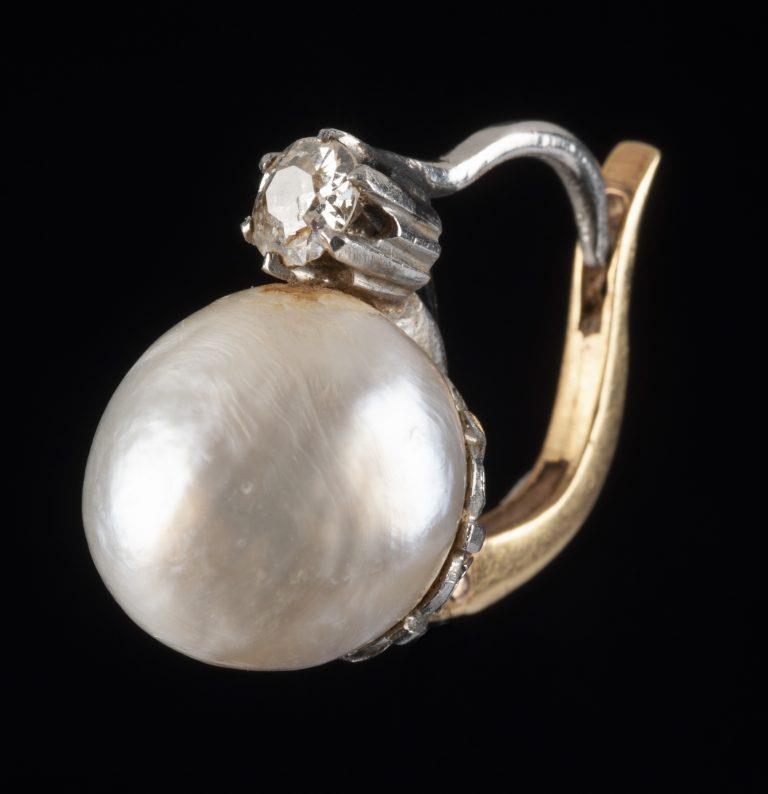 Жемчужная серёжка Императрицы Александры Фёдоровны. Фото с выставки «Тайны и Одиссеи». 2023 г.