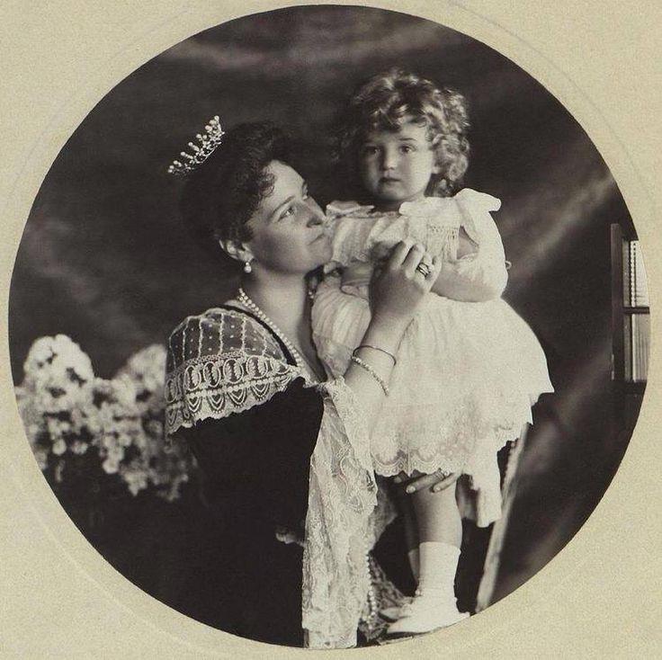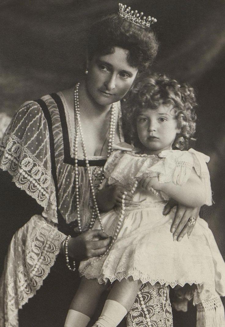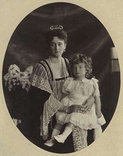 Несколько лет спустя Александра Фёдоровна надела жемчужную корону для серии портретов, сделанных вместе с сыном, цесаревичем Алексеем, в Александровском дворце в 1906 году: