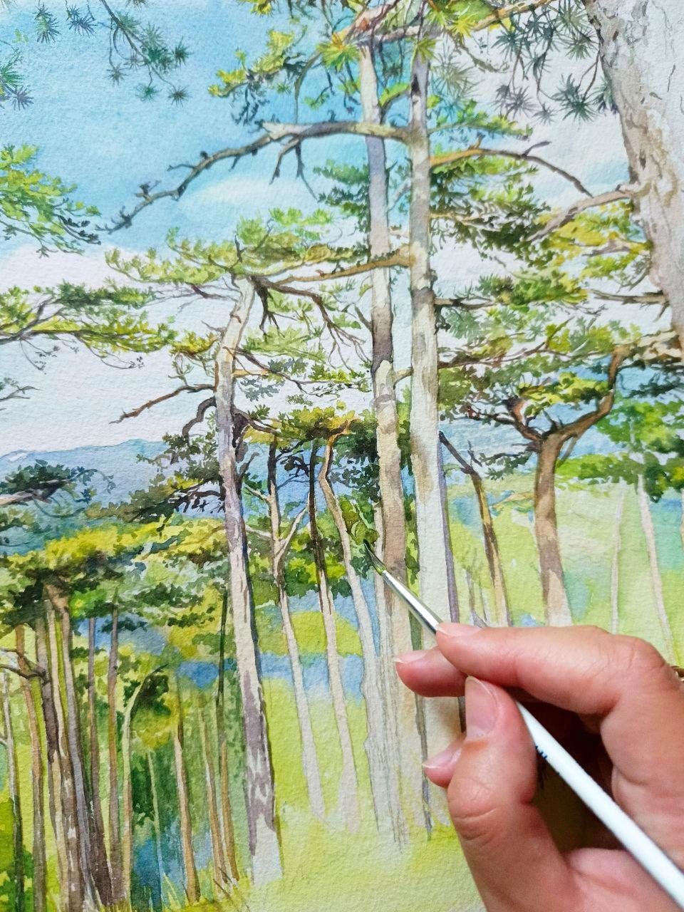 Это прекрасное место увидела во время подъема на гору Ай-Петри. Я в восхищение от красоты и кристальной чистоты воздуха горного леса! Рада,что могу поделиться этими ощущениями хотя бы через картину.