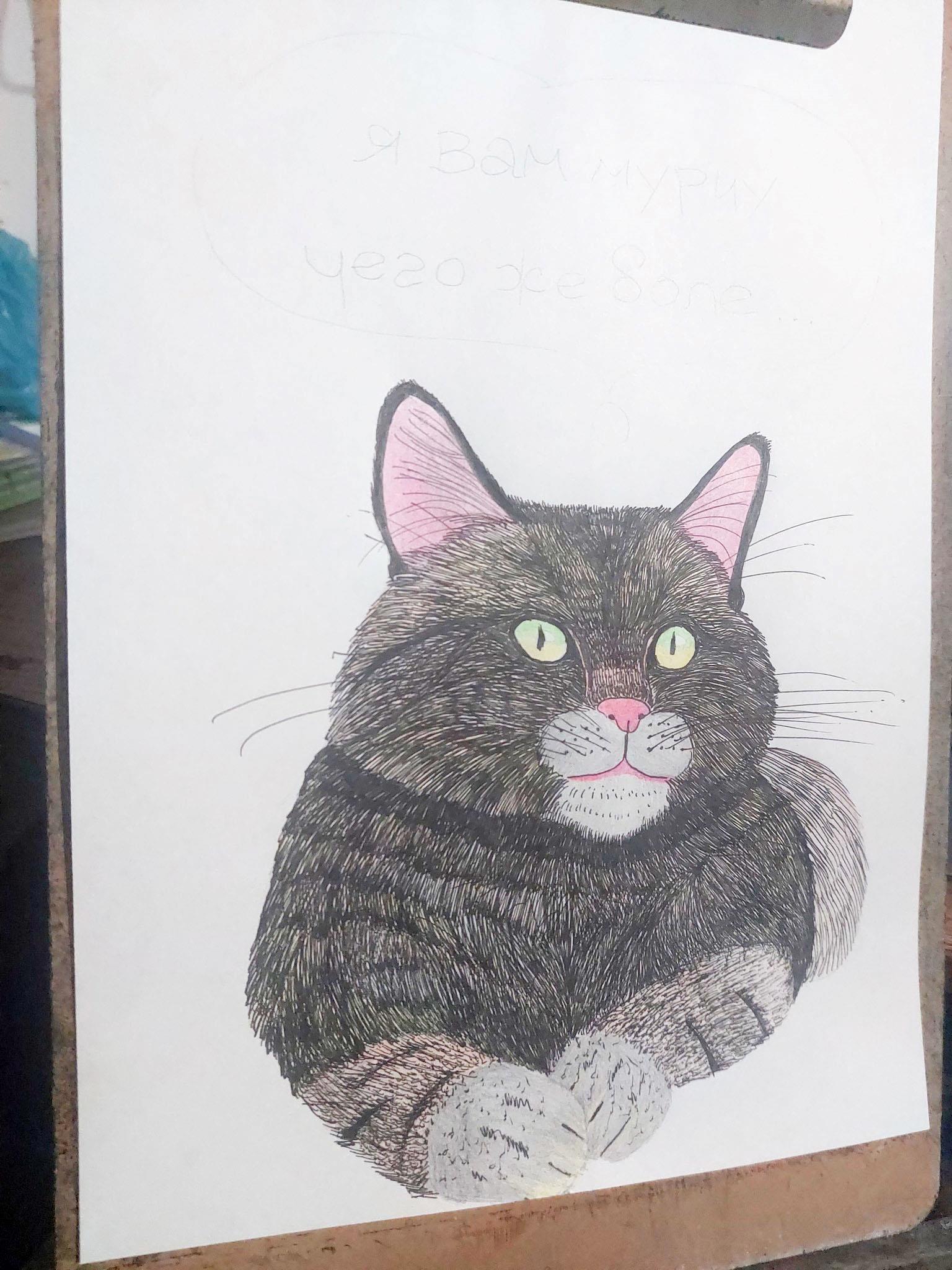 Поэтический котик Автор: Светлана Кузнецова В этот раз не гусь, пусть и опять хулиганство. Процесс: цветные карандаши, кот, гелевая ручка, хулиганство, мои рисунки 194 Пожаловаться