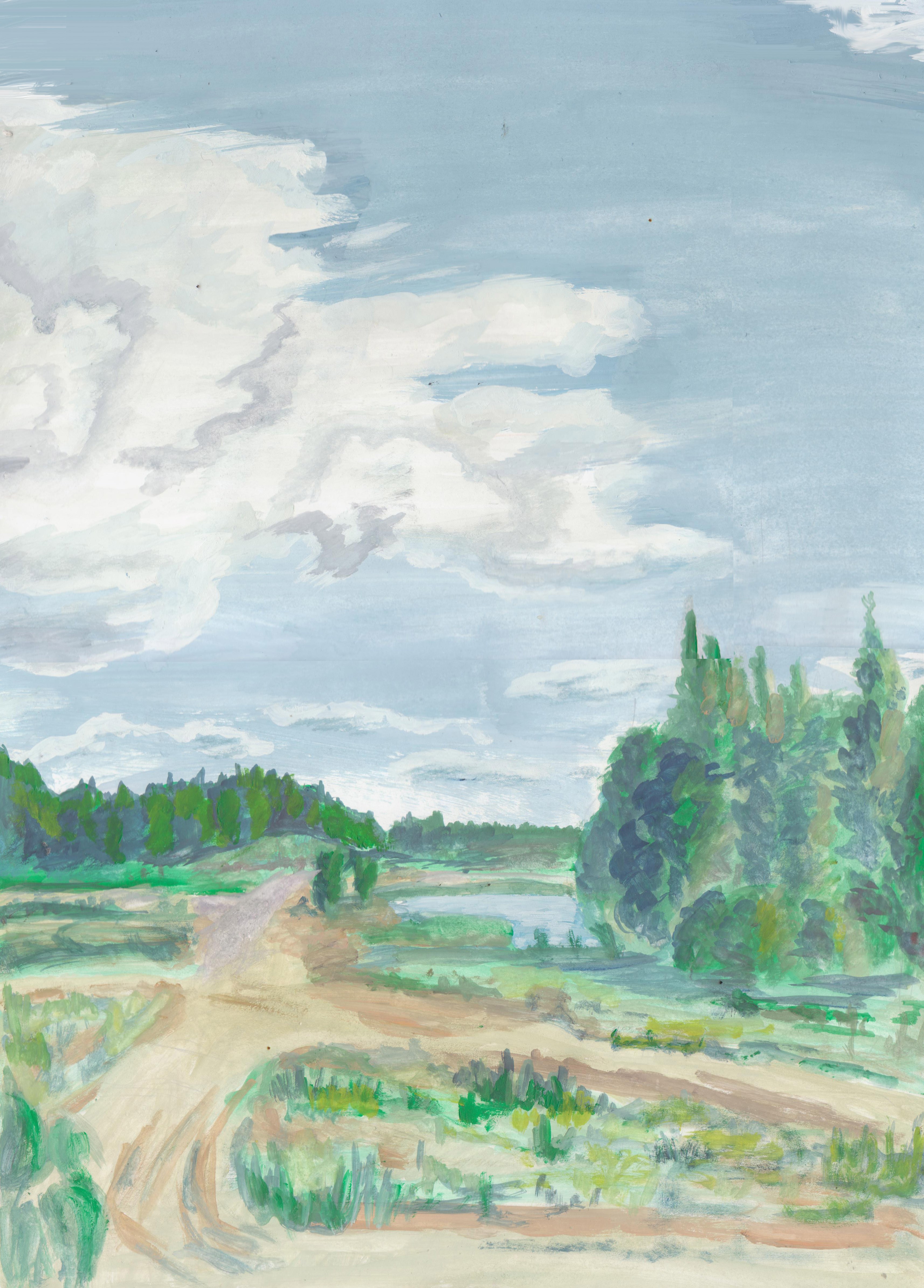Были на шашлыках в районе Малуксы на карьерах. Мой первый выезд на натуру. Правда, натура сопротивлялась сильным ветром, пытаясь вырвать бумагу.