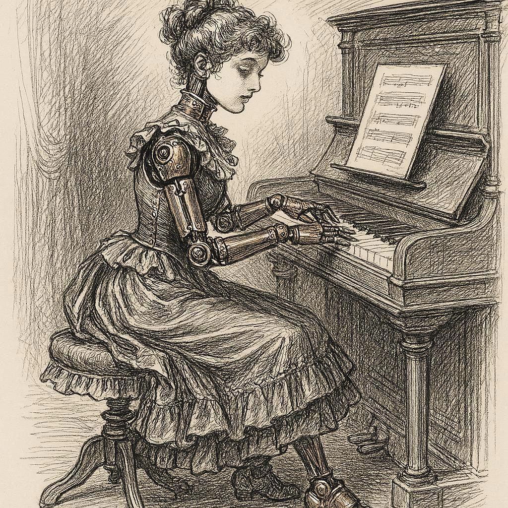 automaton doll of a fifteen year old girl playing the piano.