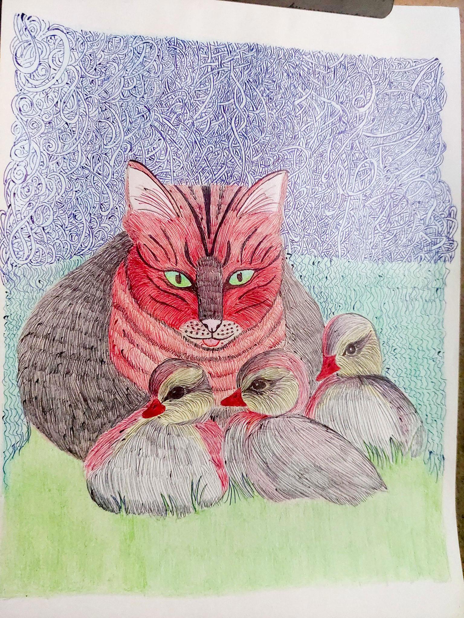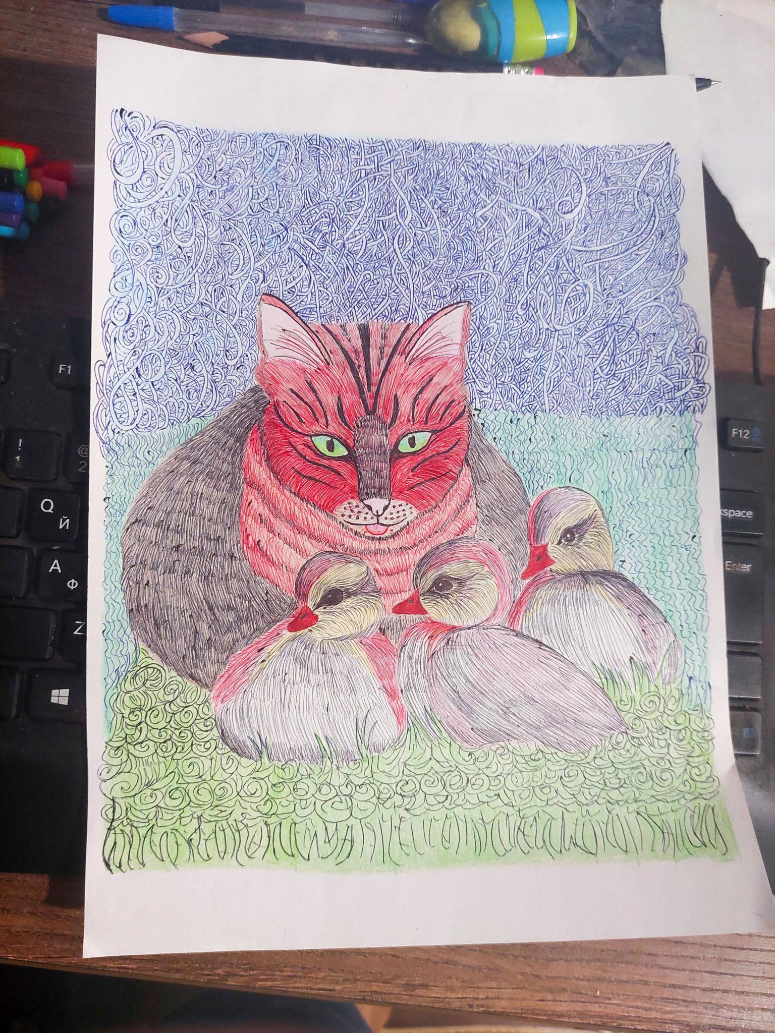 Расплата Автор: Светлана Кузнецова Продолжение предыдущей иллюстрации. Процесс: шариковые ручки, цветные карандаши, хулиганство, мои рисунки, котики спасут мир 176 Пожаловаться