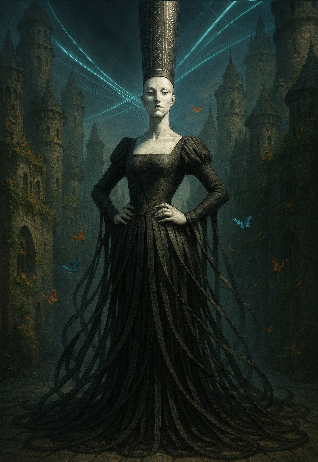 "Она внезапно присела на корточки, подложив кулаки под подбородок. Цветы в её руке уныло повисли, уронив несколько лепестков, но те тут же вернулись на свои места. Из-под шуршащих полос платья вырвалась мраморная коленка с чётким шарниром. Эта поза была настолько неминистерской и несуразной, что Эш немного успокоилась.