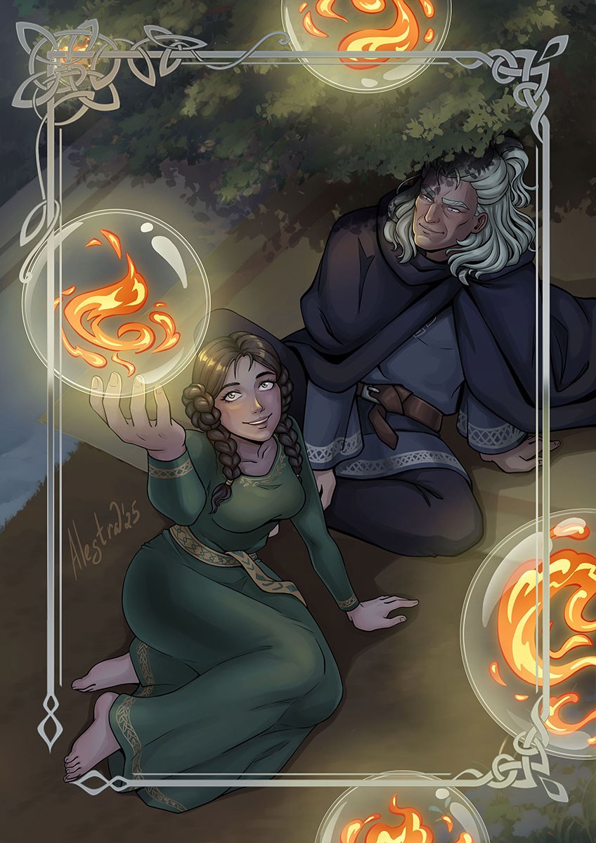 Келия отползла подальше, освобождая ему место. Подумав, Мерон скинул обувь, и тоже босым опустился рядом. Приблизившееся пламя пускало рыжие крапинки в его голубые глаза. Огонёк плясал в прозрачном шаре в локте над головой чародея, то вытягиваясь, то сжимаясь в точку, то принимая причудливые фигуры, напоминая то свечу под колпаком, то блуждающий болотный огонь. Келия протянула руку в его направлении.