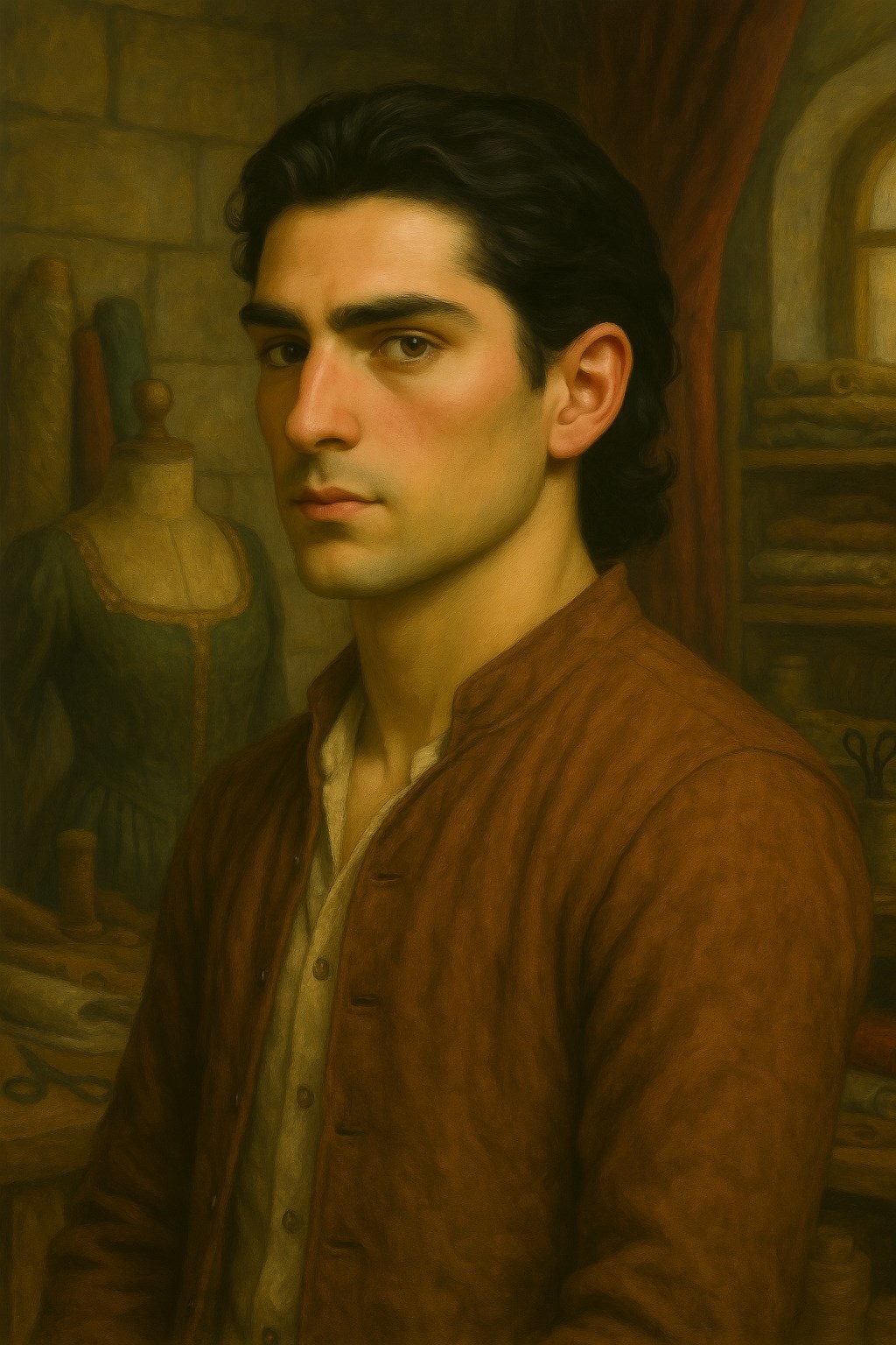Портрет еще однгого персонажа для книги. Как по мне, хорошо получилось передать характер и происхождение. Делала в chat gpt, получались по началу слишком горячие итальянцы в стиле мафиози из "365 дней" XD