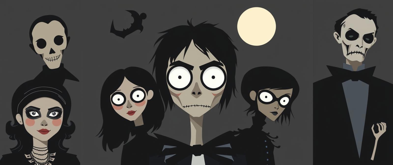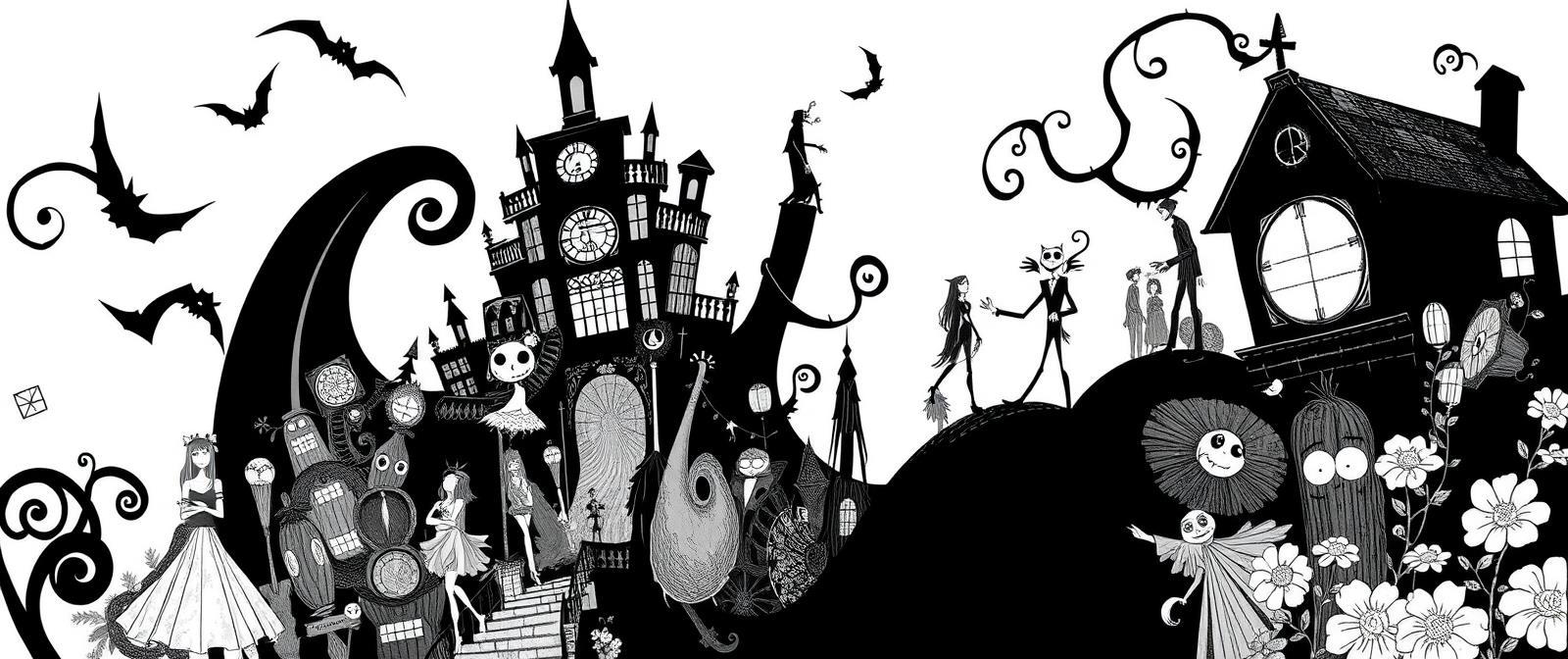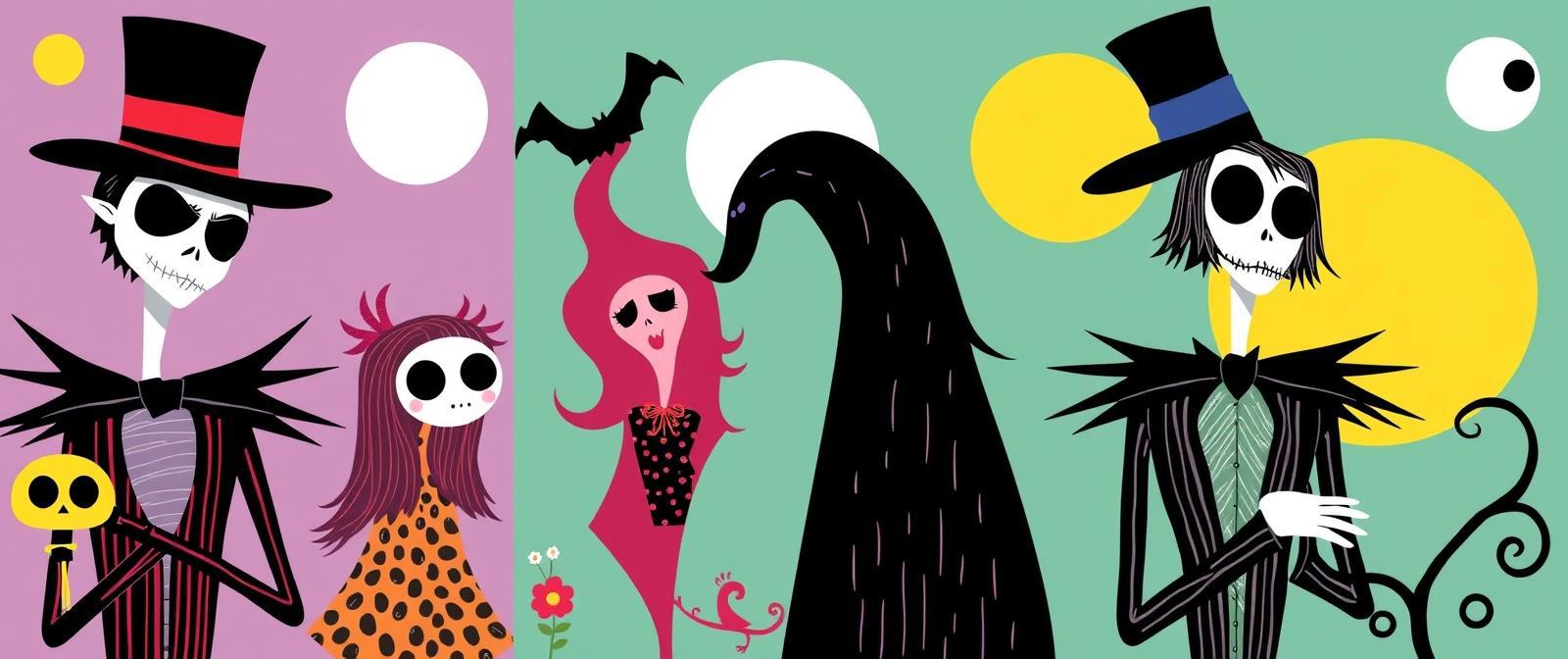 Нейро на тему стиля Тима Бёртона. Разные по другим параметрам.