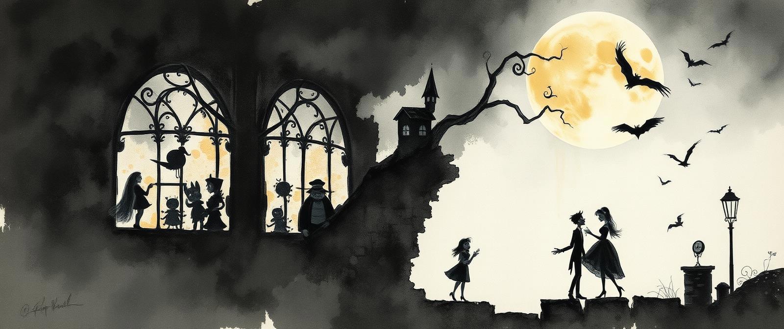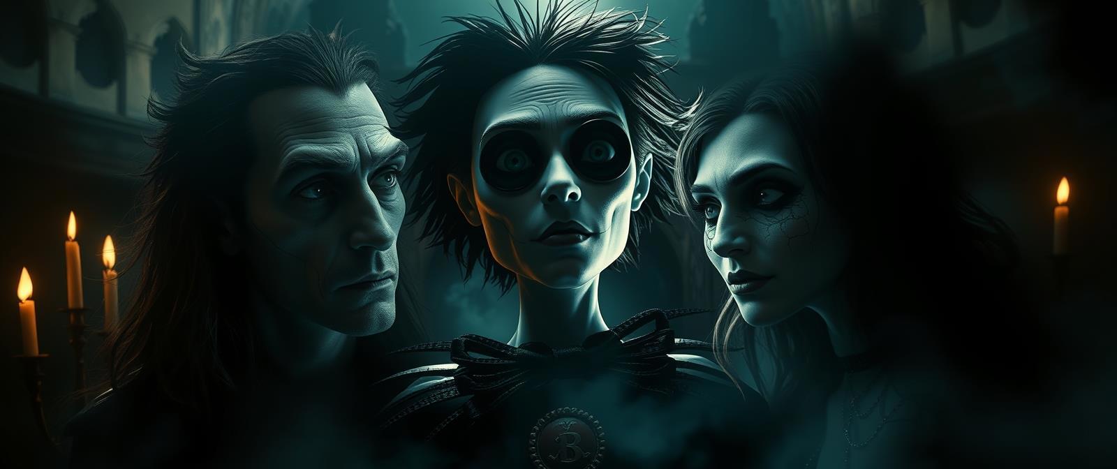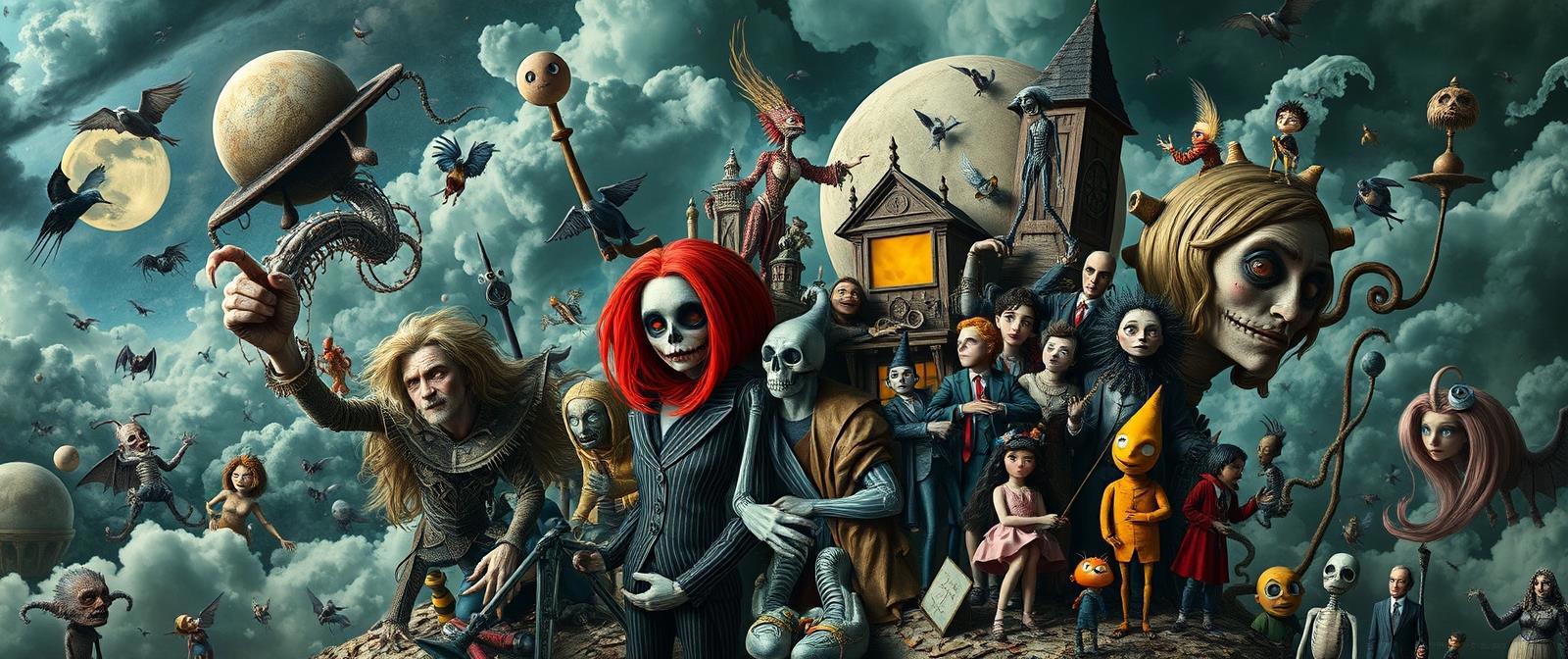 Нейро на тему стиля Тима Бёртона. Разные по другим параметрам.