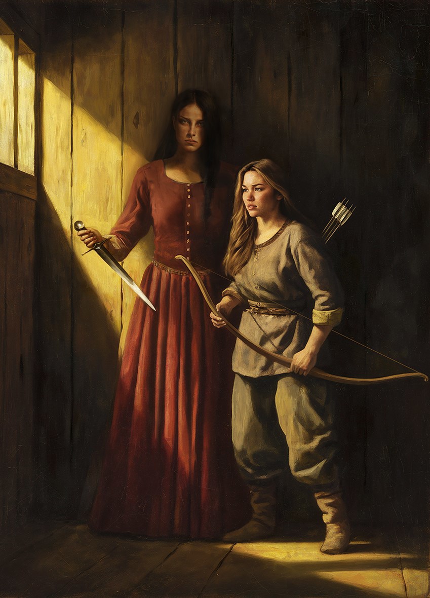 А вот и та иллюстрация, половину которой вы уже видели. Доделала ее к фестивалю, успела напечатать промо-открытки, и этот арт оказался вторым по популярности среди моих бесплатных материалов. Первый - Симель в доспехах на коне. Честно говоря, сама я не смогла бы выбрать между ними. И там, и там много силы.