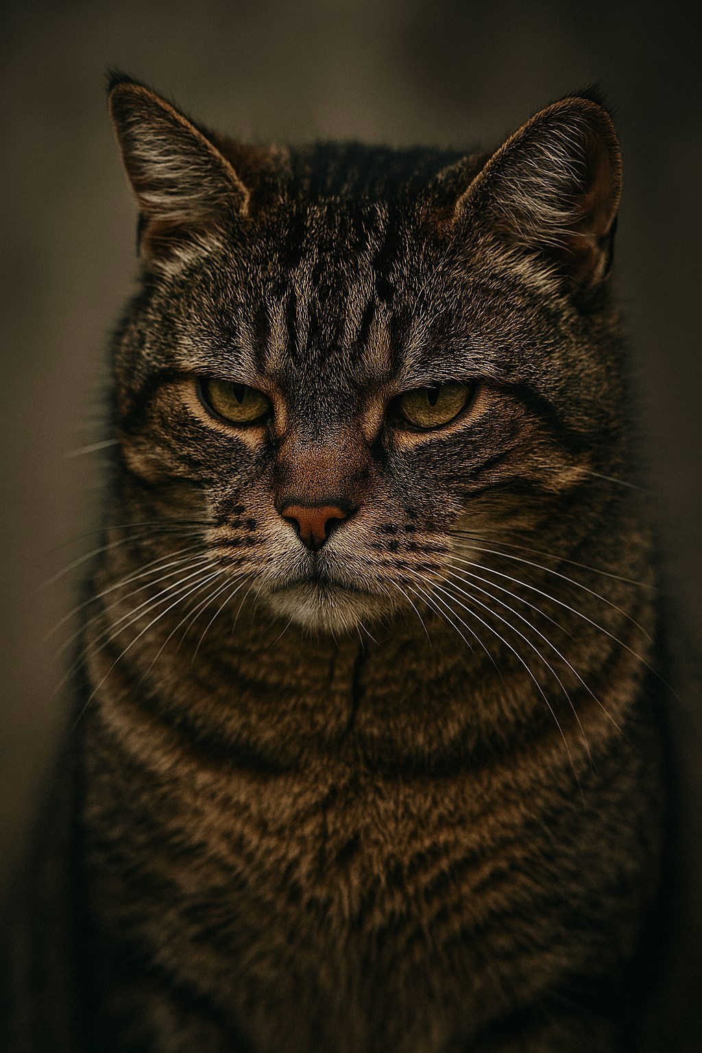 Сделал в нейронке просто для комментария фото задумавшегося серьёзного кота. Но вот прям отлично получился. Виден характер и железная воля.