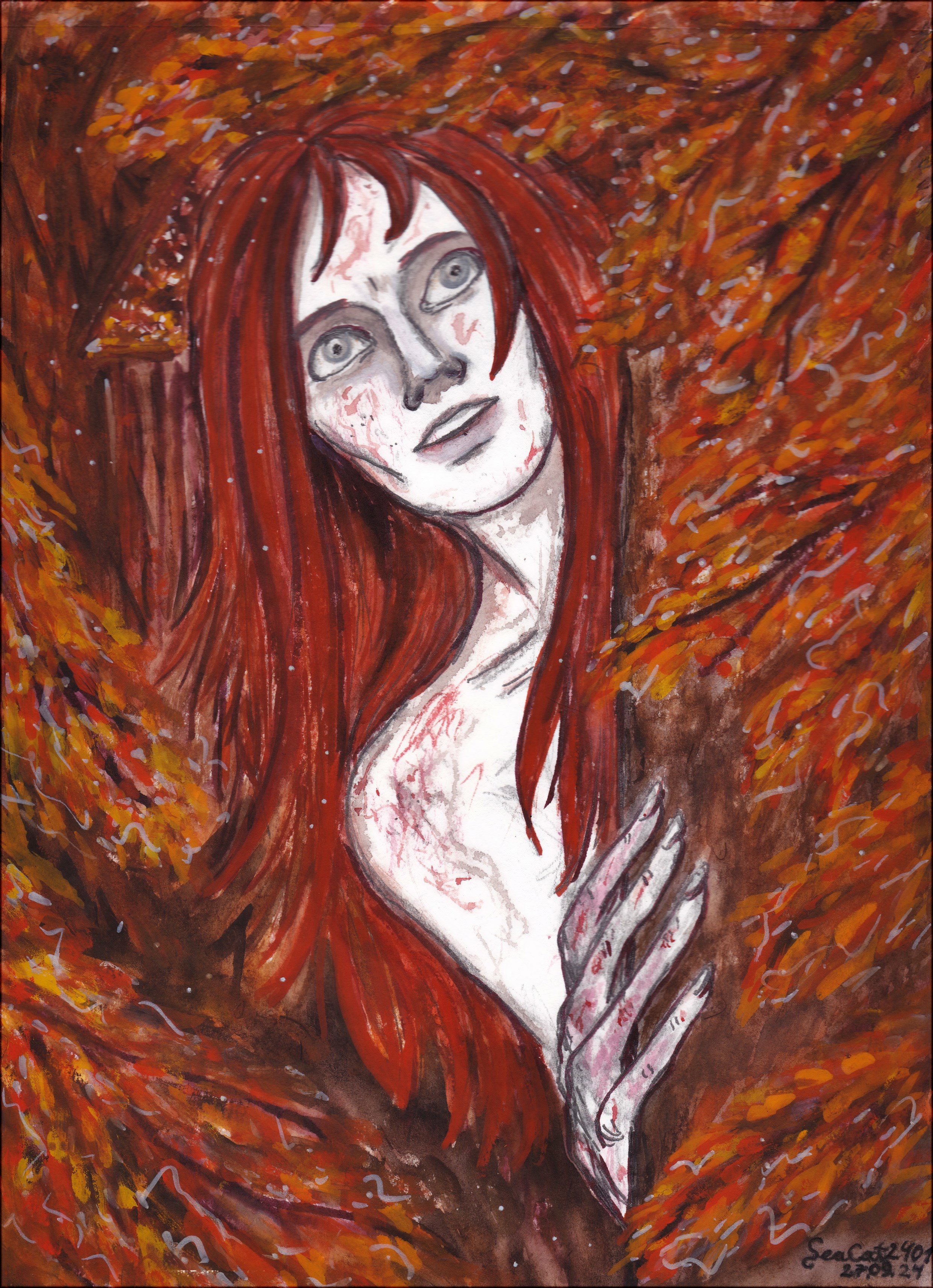 Ещё одна осенняя иллюстрация с Майло, но без его маски. С акварелью я не сильно дружу, но иногда экспериментирую.