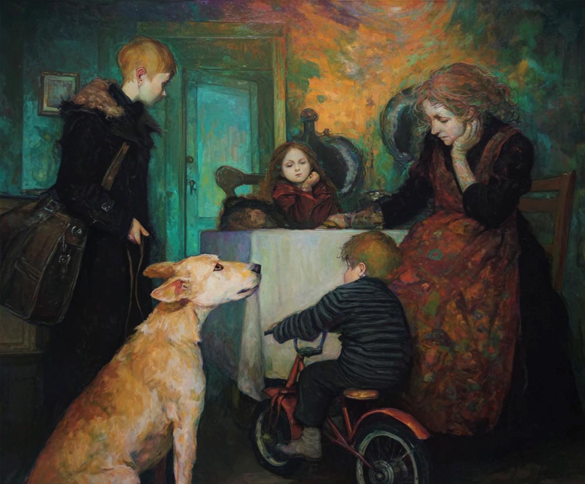 В категории "Нейро по классике" нужно было сделать реплику (три реплики) на картину Федора Павловича Решетникова "Опять двойка".